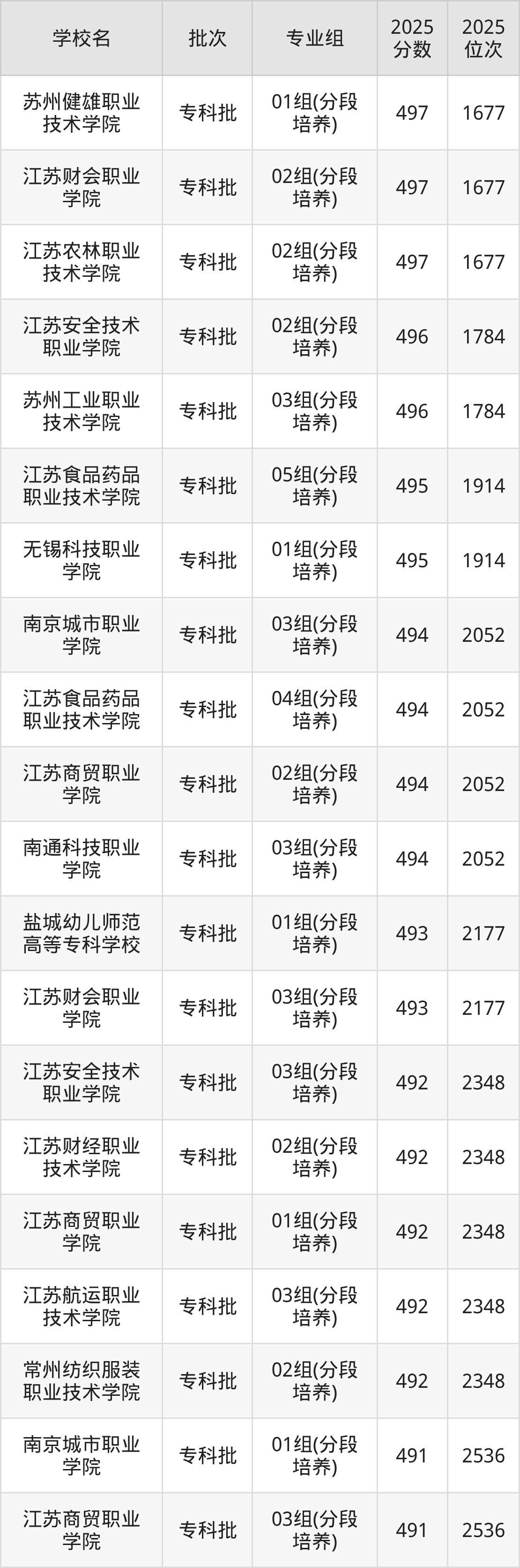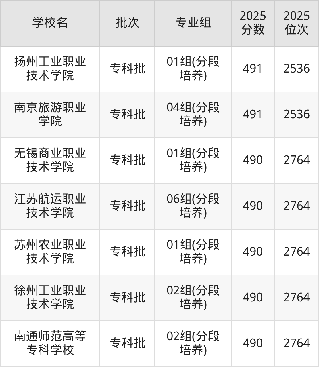 另外录取位次低于该区间(较稳妥)的有江苏商贸职业学院03组(分段培养)(2536名)、南京城市职业学院01组(分段培养)(2536名)等;录取位次高于该区间(可冲)的有成都银杏酒店管理学院01组(50998名)、江西应用科技学院01组(50998名)等。