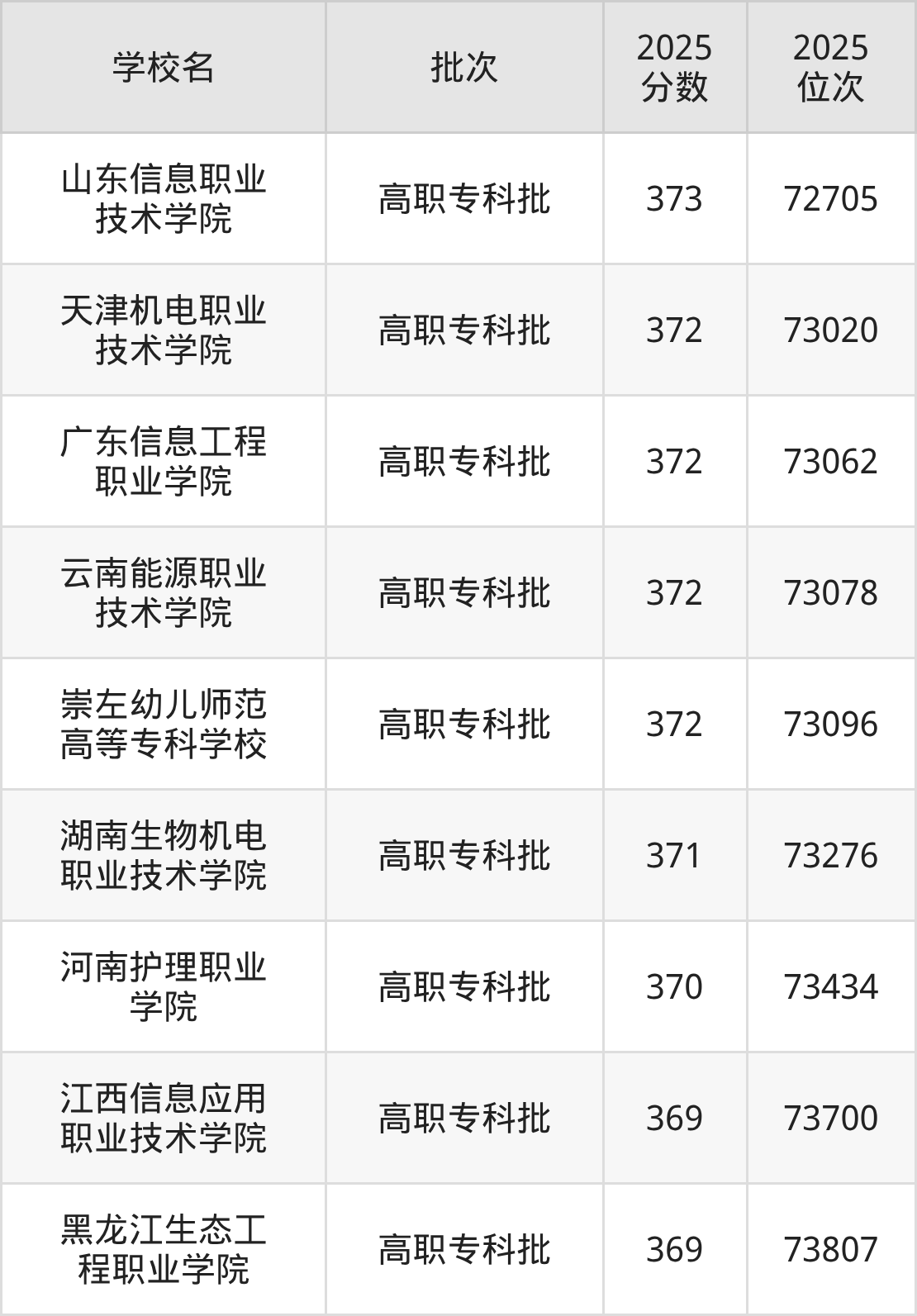 2025年贵州高考历史类371分(73107名~73404名)能上的大学有湖南生物机电职业技术学院。