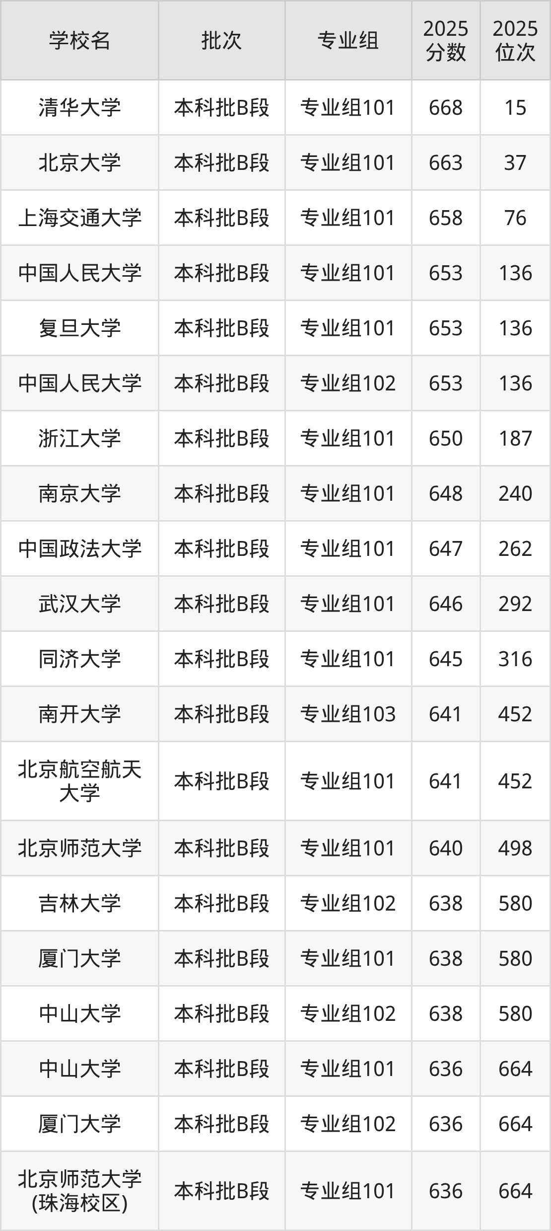 2025年四川高考历史类639分(499名~538名)录取位次低于该区间(较稳妥)的有中山大学专业组102(580名)、厦门大学专业组101(580名)等;录取位次高于该区间(可冲)的有北京师范大学专业组101(498名)、南开大学专业组103(452名)等。