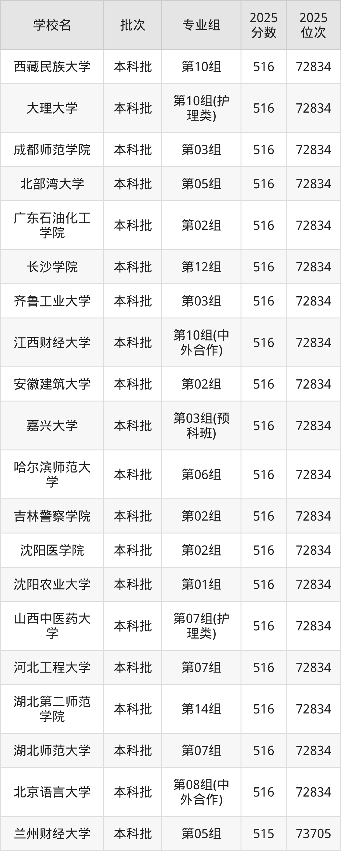 这些都是2026年高考物理类72835名~73705名考生可以报考的大学,更多学校名单如下表所示: