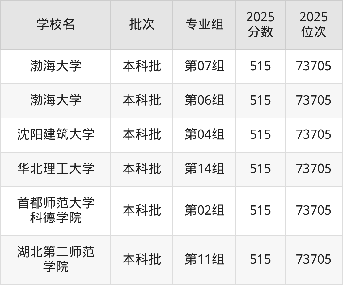 2025年湖北高考物理类515分(72835名~73705名)能上的大学有湖北第二师范学院第11组、首都师范大学科德学院第02组、华北理工大学第14组、沈阳建筑大学第04组等。
