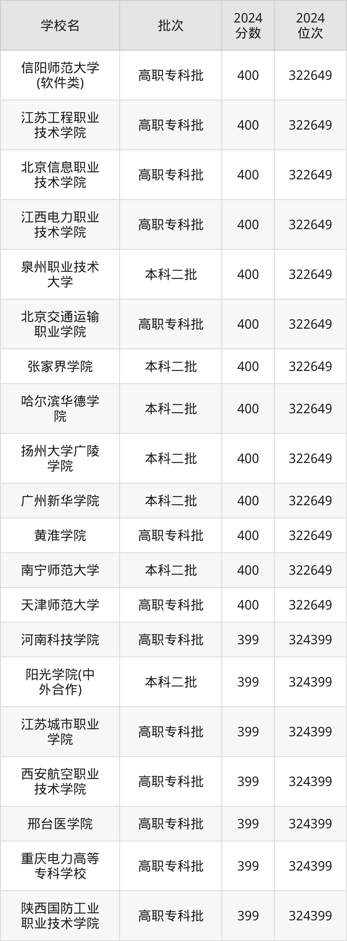 这些都是2025年高考理科322651名~324400名考生可以报考的大学,更多学校名单如下表所示:
