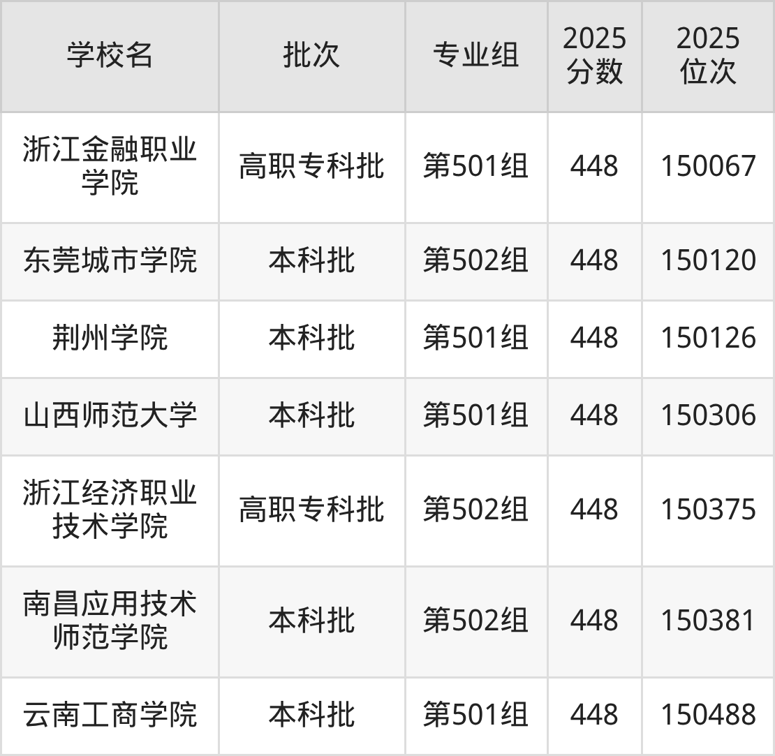 这些都是2026年高考物理类148842名~150011名考生可以报考的大学,更多学校名单如下表所示: