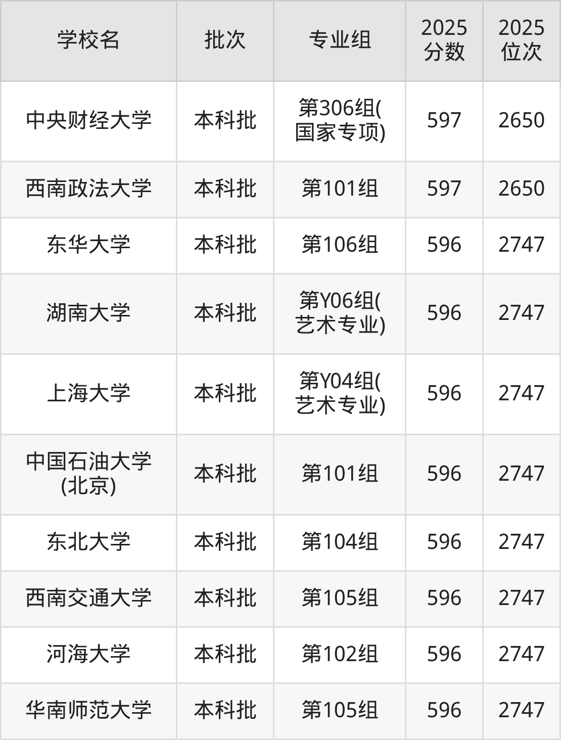 这些都是2026年高考历史类2179名~2273名考生可以报考的大学,更多学校名单如下表所示: