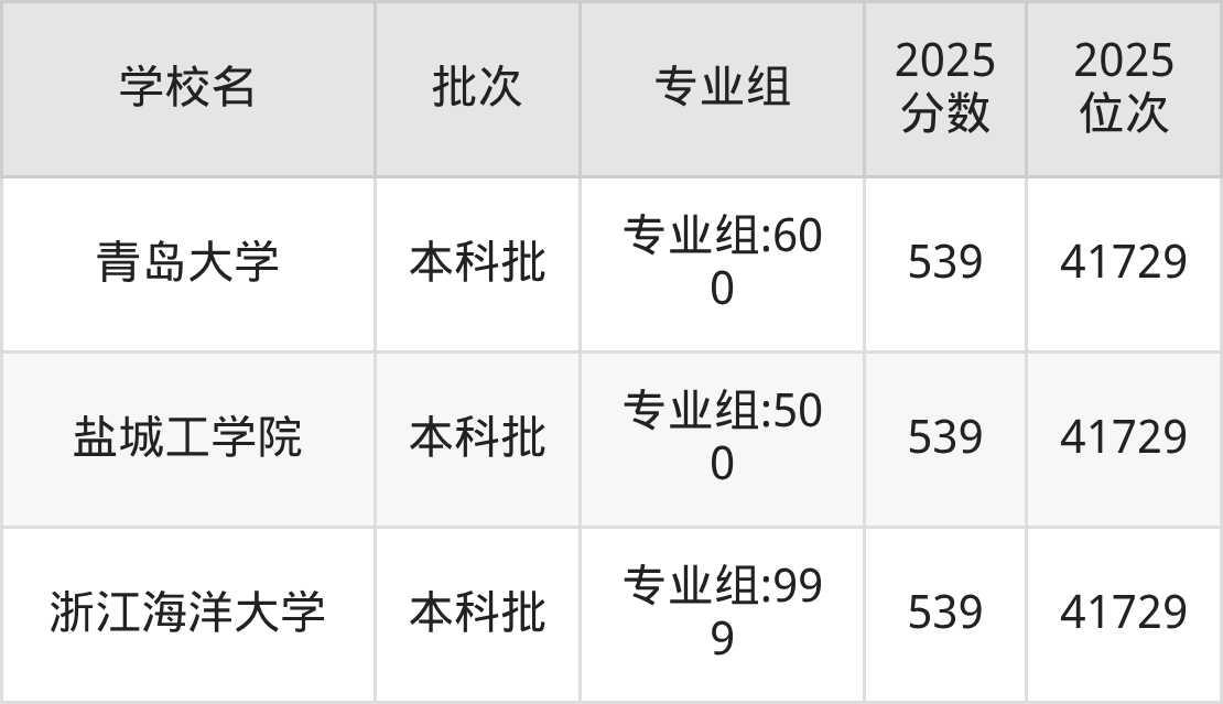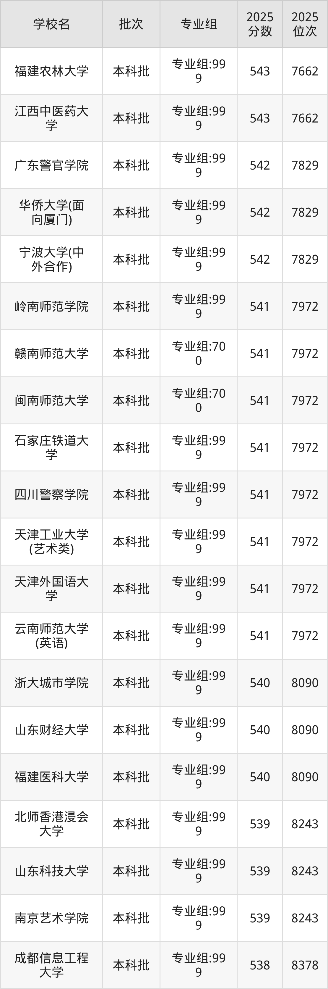 2025年福建高考历史类539分(8091名~8243名)能上的大学有北师香港浸会大学专业组:999、南京艺术学院专业组:999、山东科技大学专业组:999。
