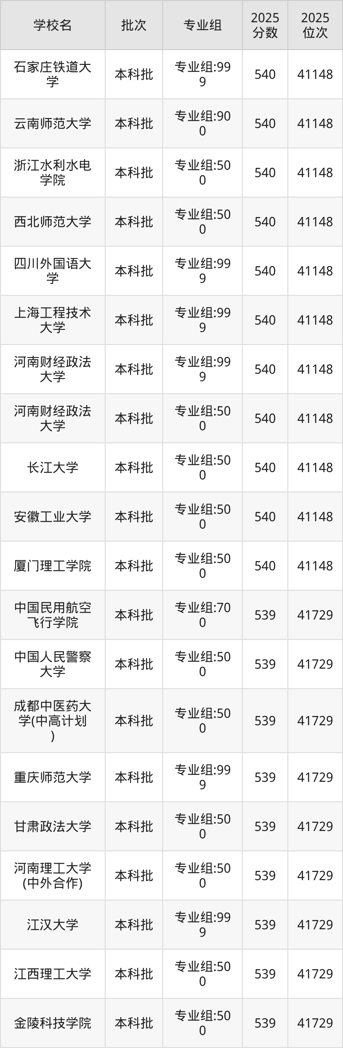 这些都是2026年高考物理类41149名~41729名考生可以报考的大学,更多学校名单如下表所示: