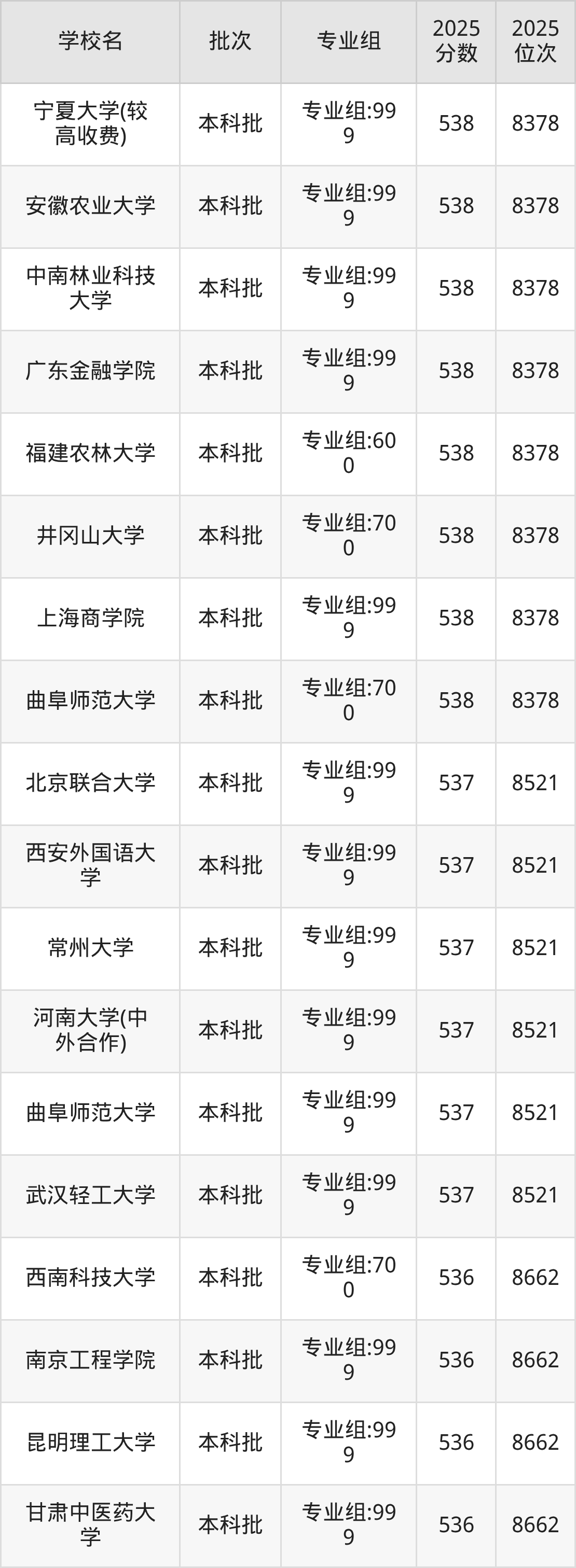 这些都是2026年高考历史类8091名~8243名考生可以报考的大学,更多学校名单如下表所示: