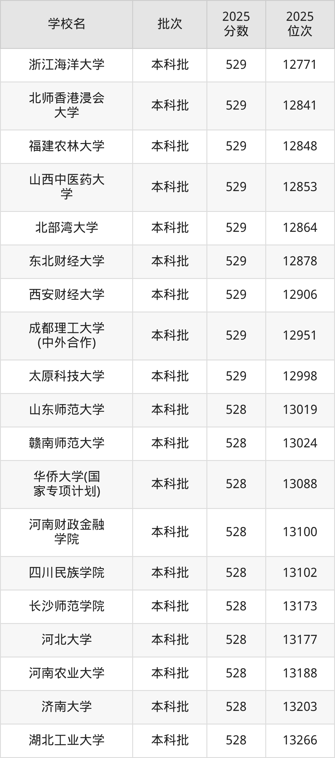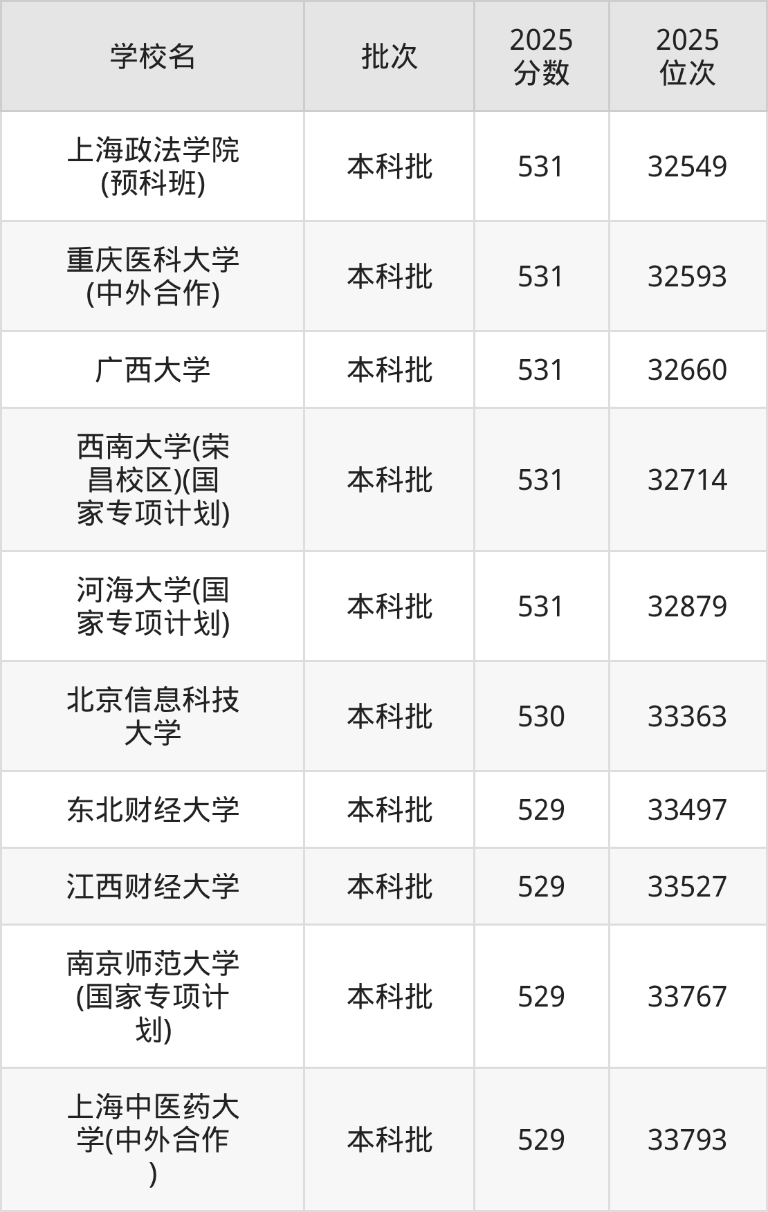 这些都是2026年高考历史类12501名~12768名考生可以报考的大学,更多学校名单如下表所示: