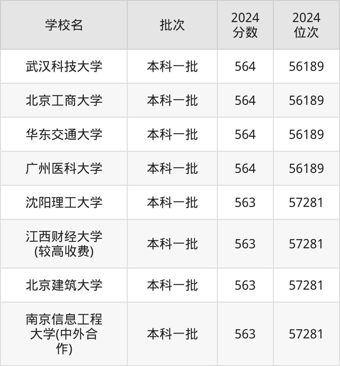 2024年河南高考理科563分(56190名~57281名)能上的大学有北京建筑大学、沈阳理工大学、南京信息工程大学(中外合作)、江西财经大学(较高收费)。