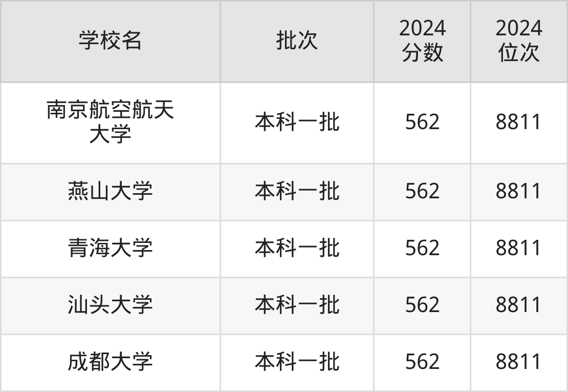 另外录取位次低于该区间(较稳妥)的有燕山大学(8811名)、青海大学(8811名)等;录取位次高于该区间(可冲)的有中国农业大学(中外合作)(8193名)、西南民族大学(8193名)等。