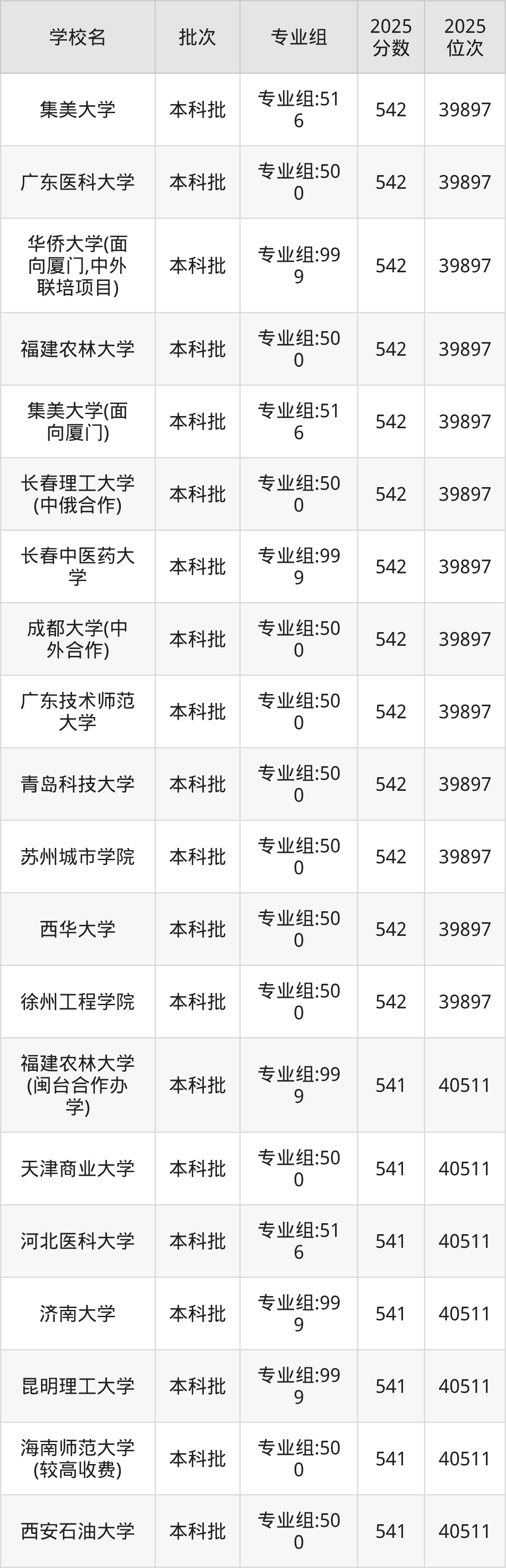 二、福建541分位次排名能上的大学
