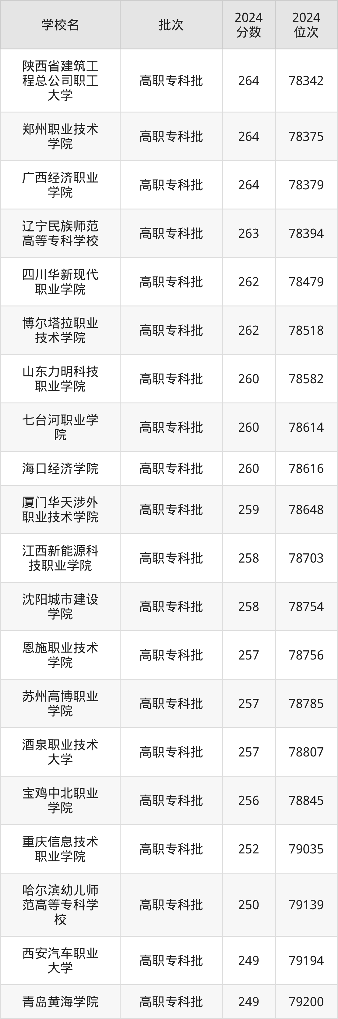 2024年陕西高考文科256分(78827名~78871名)能上的大学有宝鸡中北职业学院。