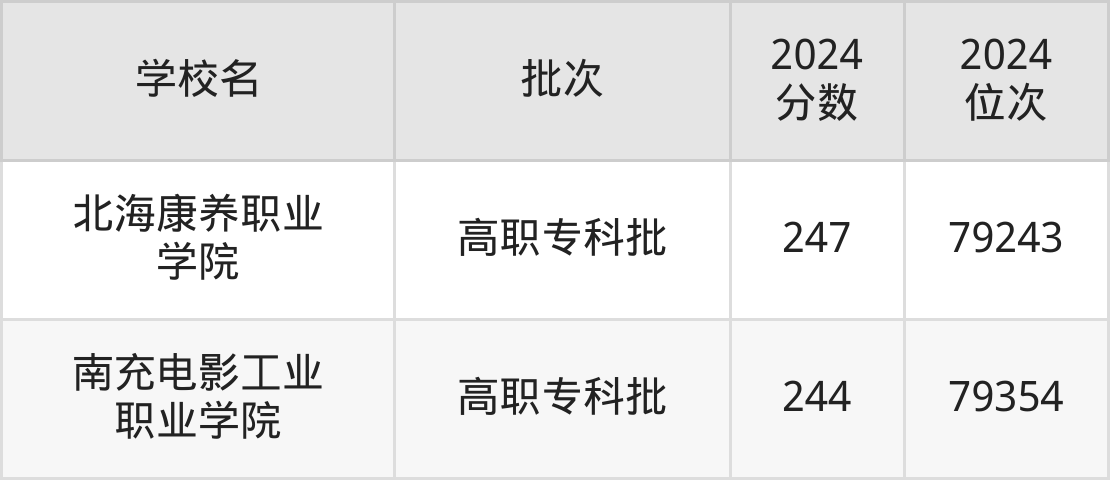 另外录取位次低于该区间(较稳妥)的有重庆信息技术职业学院(79035名)、哈尔滨幼儿师范高等专科学校(79139名)等;录取位次高于该区间(可冲)的有酒泉职业技术大学(78807名)、苏州高博职业学院(78785名)等。