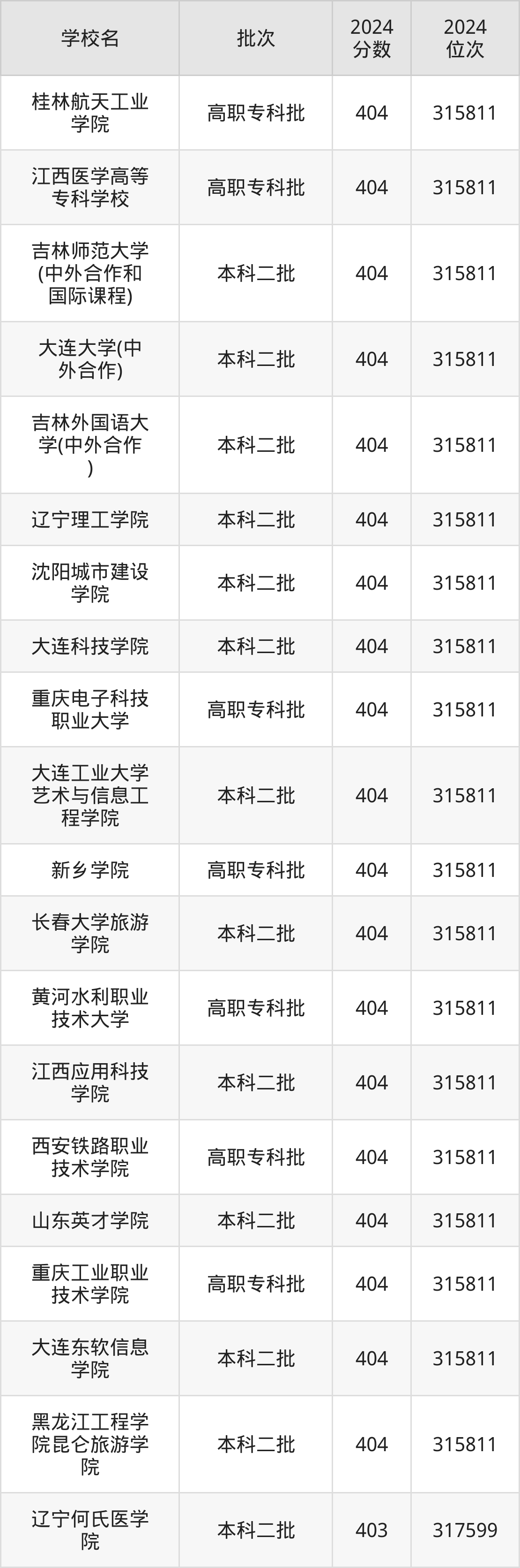 这些都是2025年高考理科315813名~317600名考生可以报考的大学,更多学校名单如下表所示: