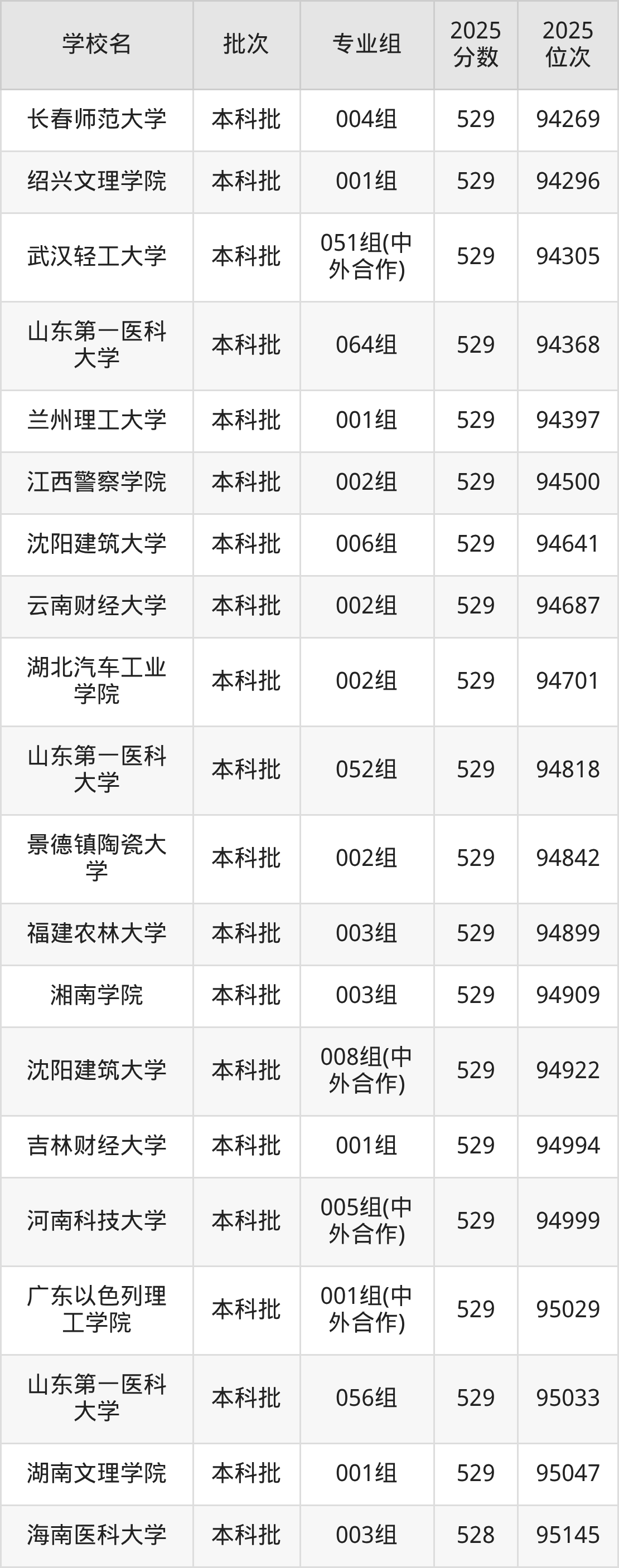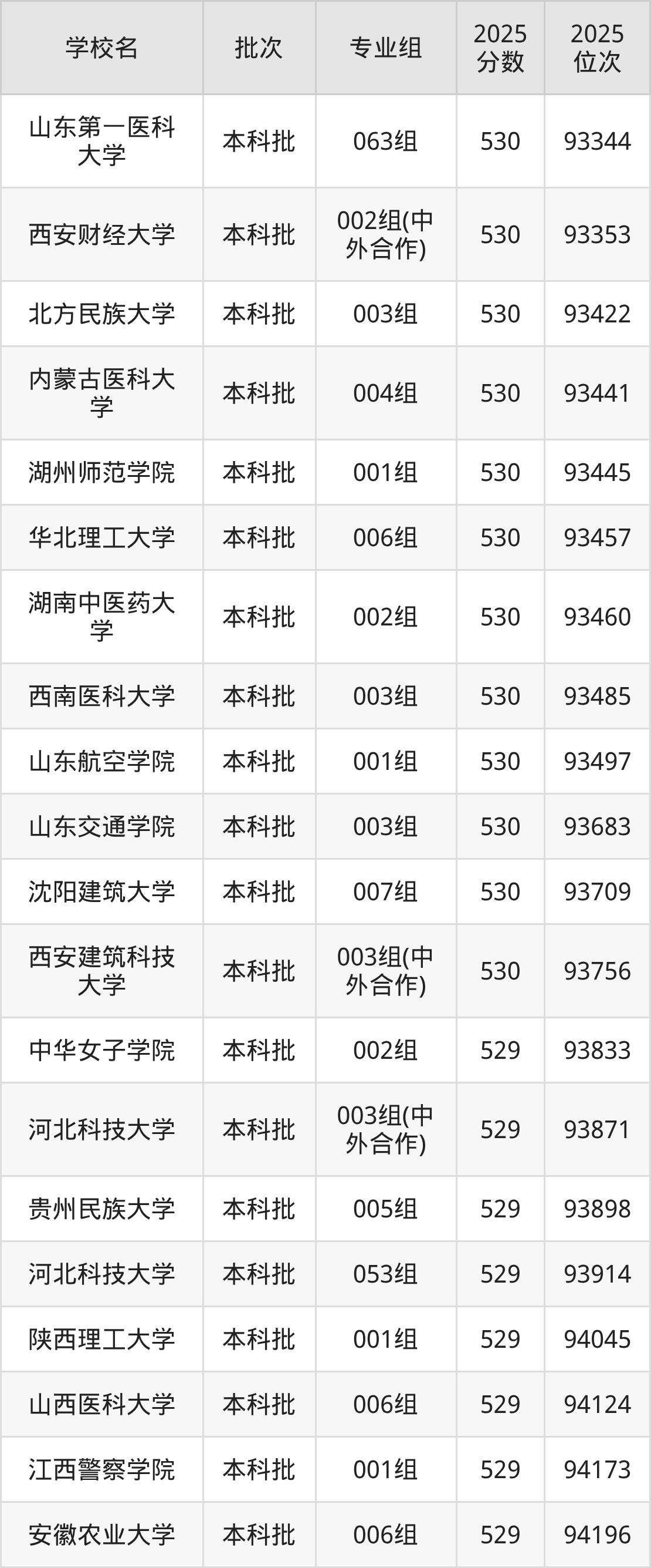 这些都是2026年高考物理类93830名~95066名考生可以报考的大学,更多学校名单如下表所示: