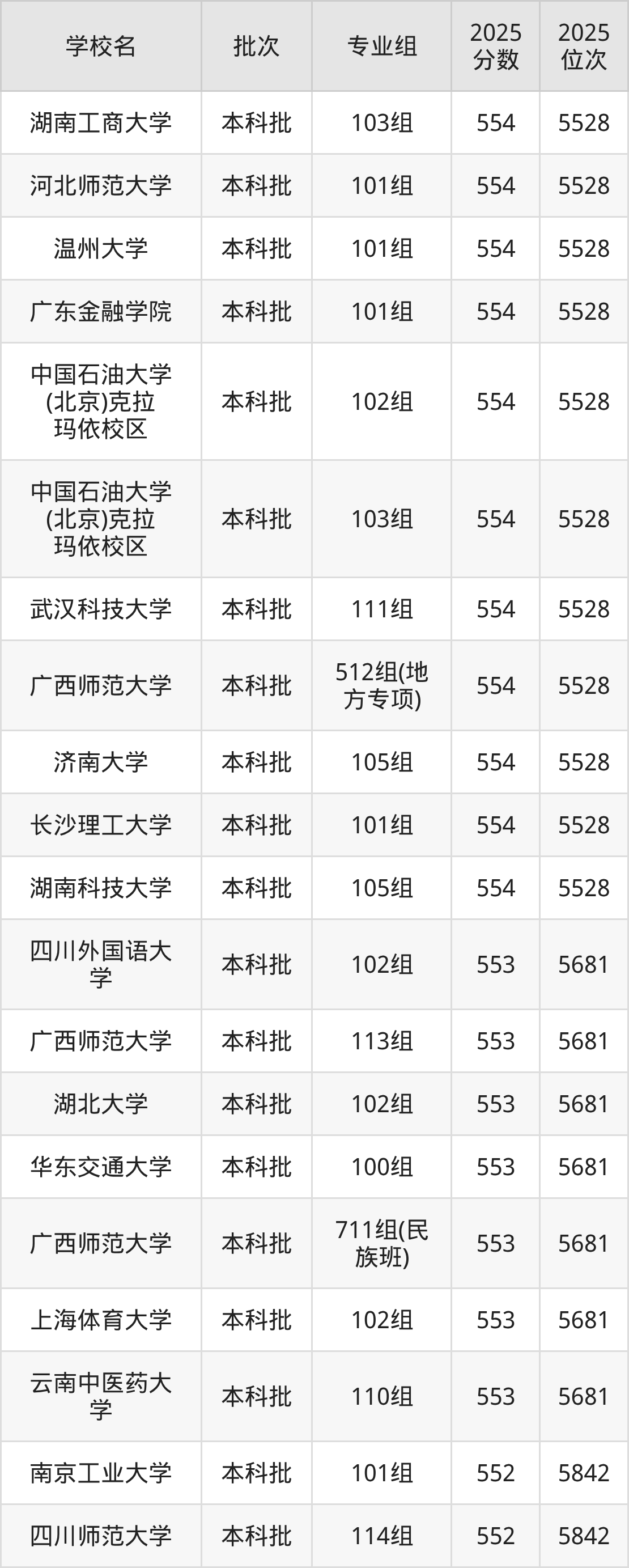 二、广西550分位次排名能上的大学