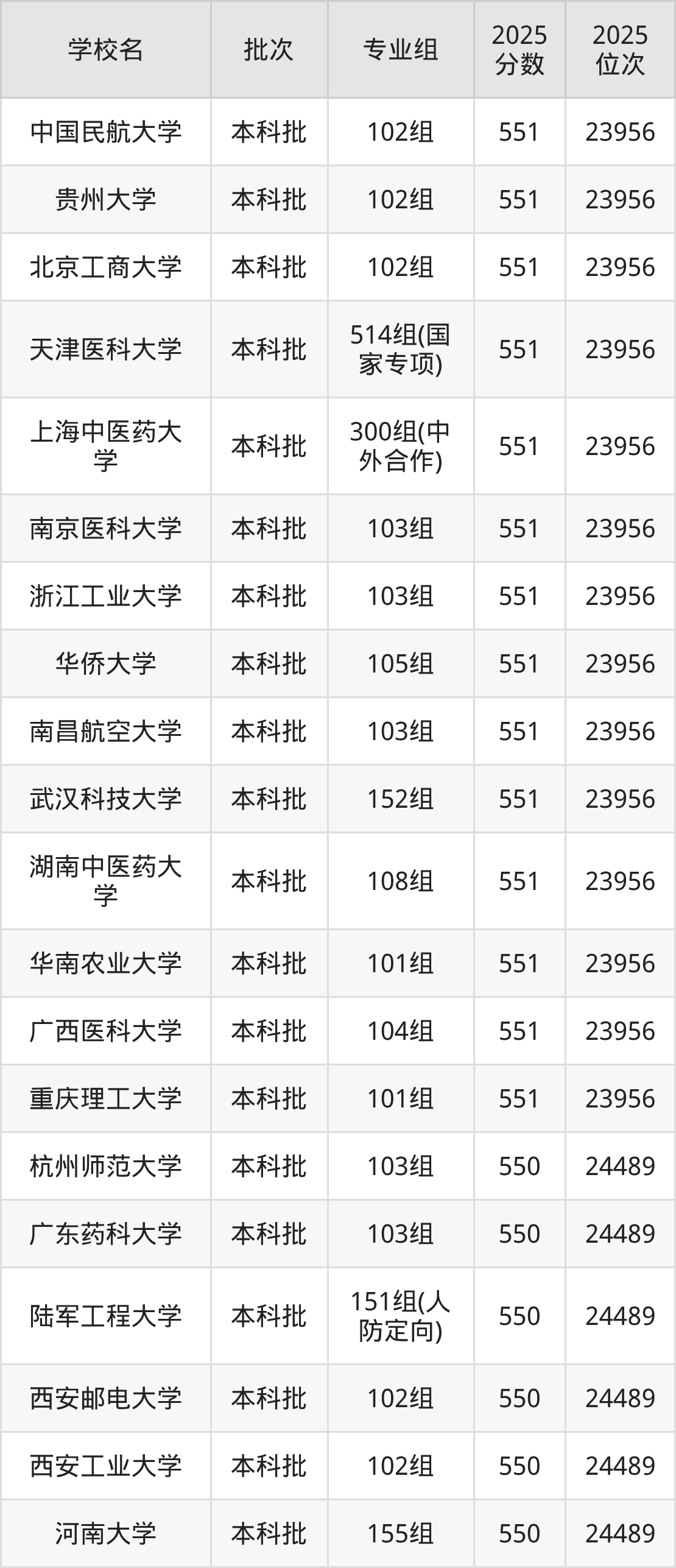 另外录取位次低于该区间(较稳妥)的有中国药科大学502组(国家专项)(24988名)、南通大学105组(24988名)等;录取位次高于该区间(可冲)的有北京工商大学102组(23956名)、中国民航大学102组(23956名)等。
