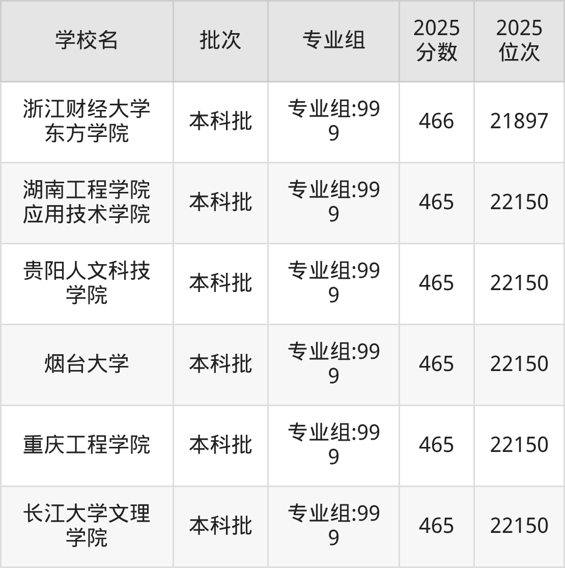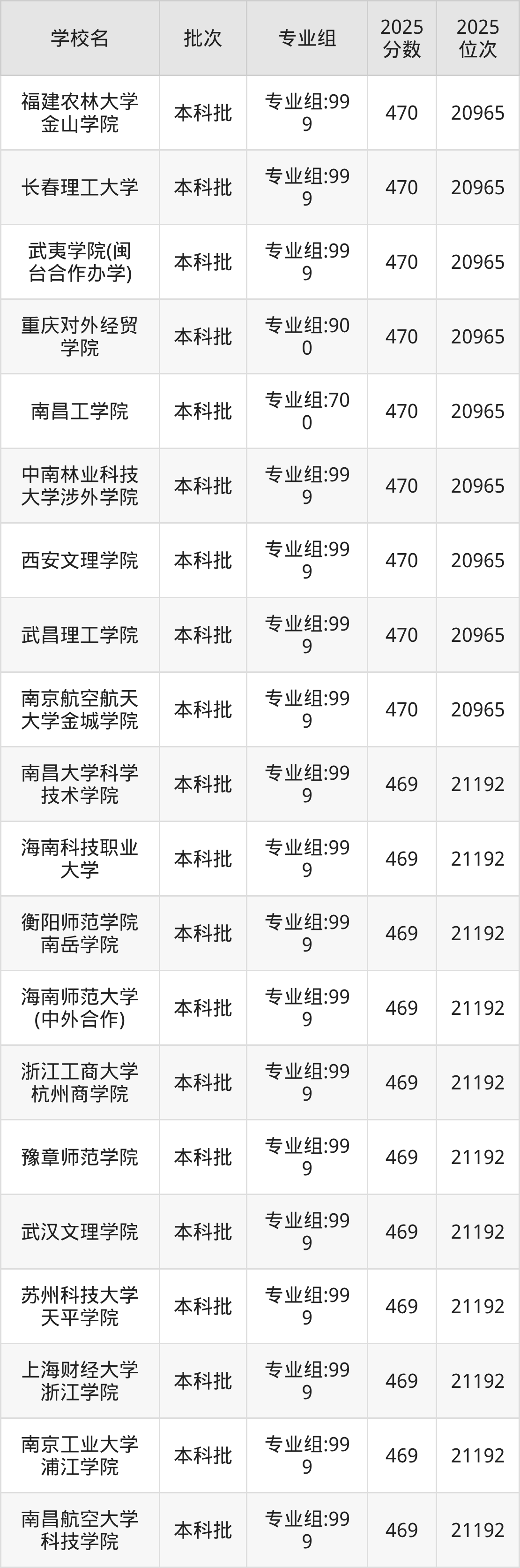 这些都是2026年高考历史类21426名~21665名考生可以报考的大学,更多学校名单如下表所示: