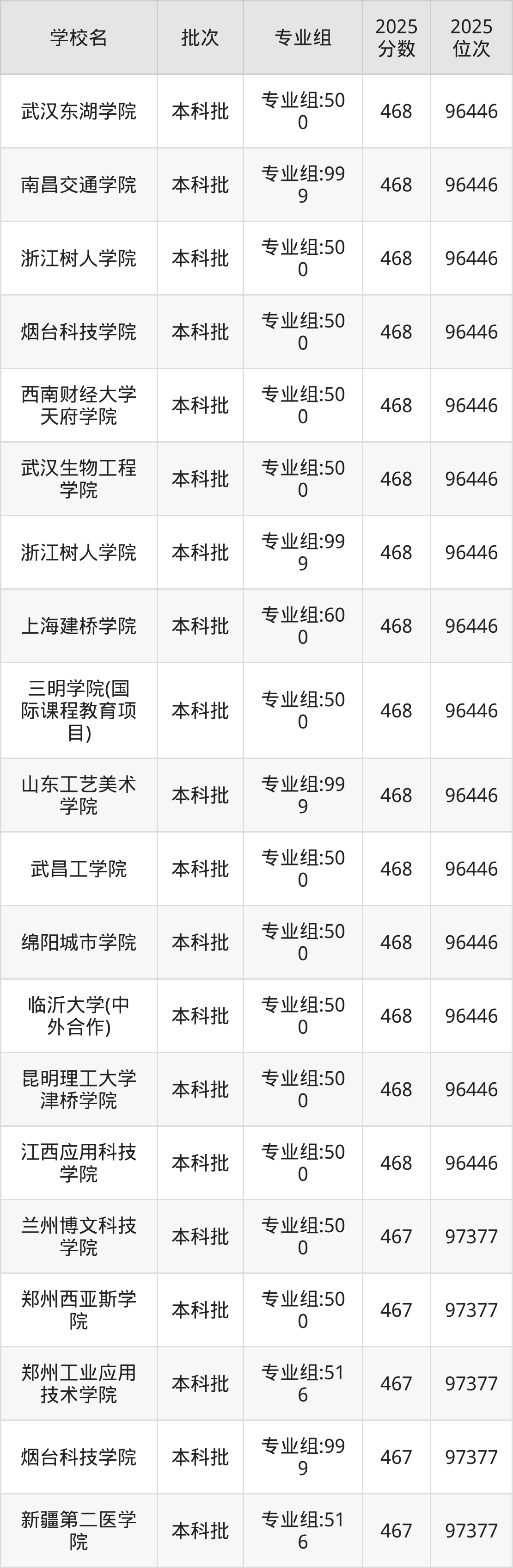这些都是2026年高考物理类96447名~97377名考生可以报考的大学,更多学校名单如下表所示:
