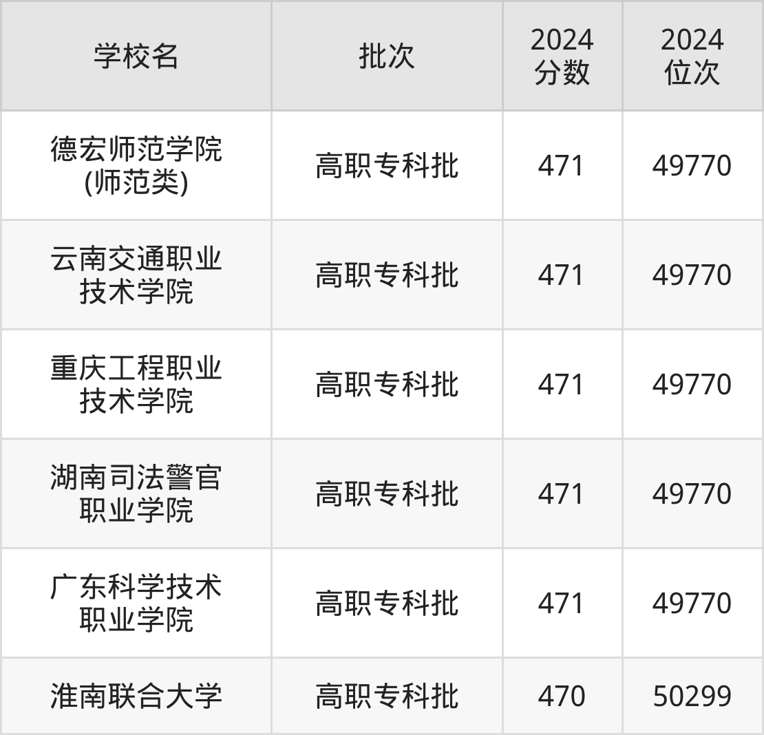 2024年云南高考文科470分(49771名~50299名)能上的大学有淮南联合大学。