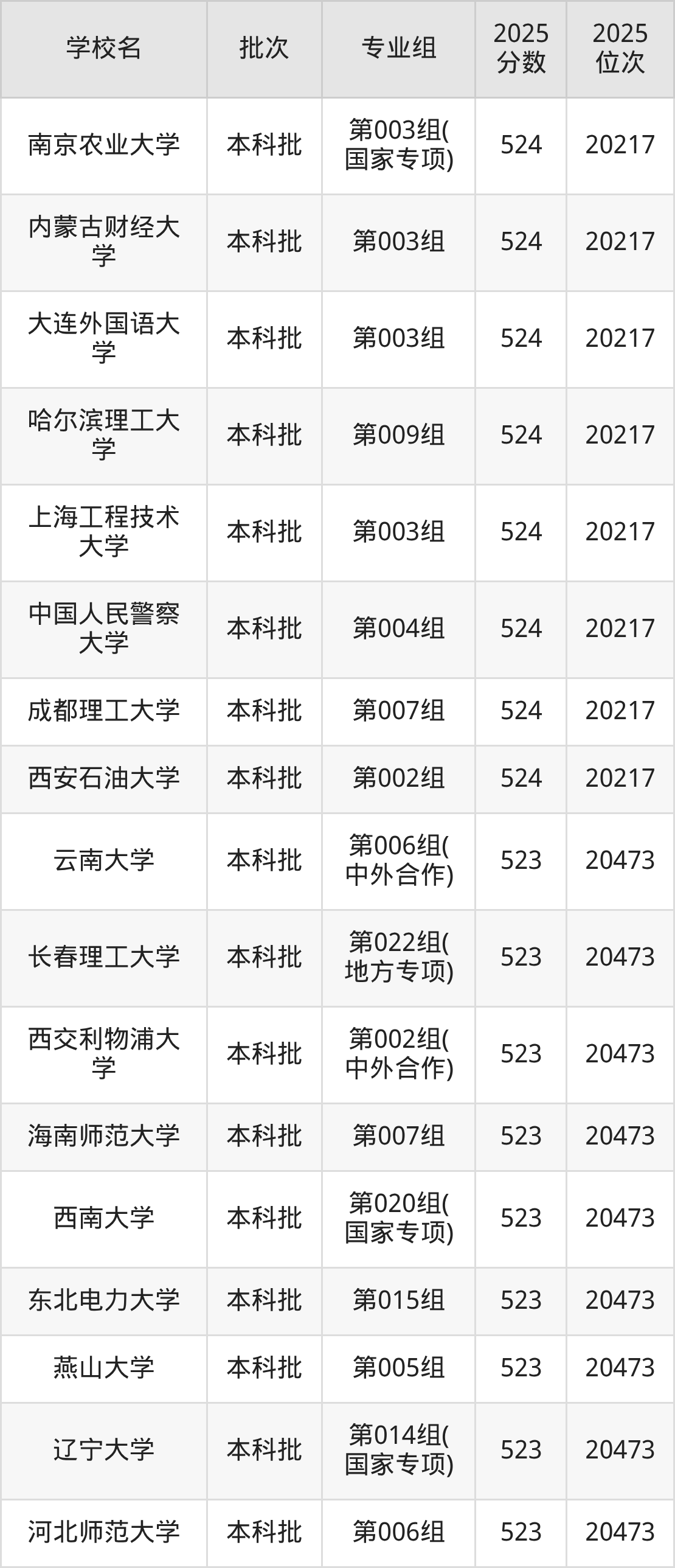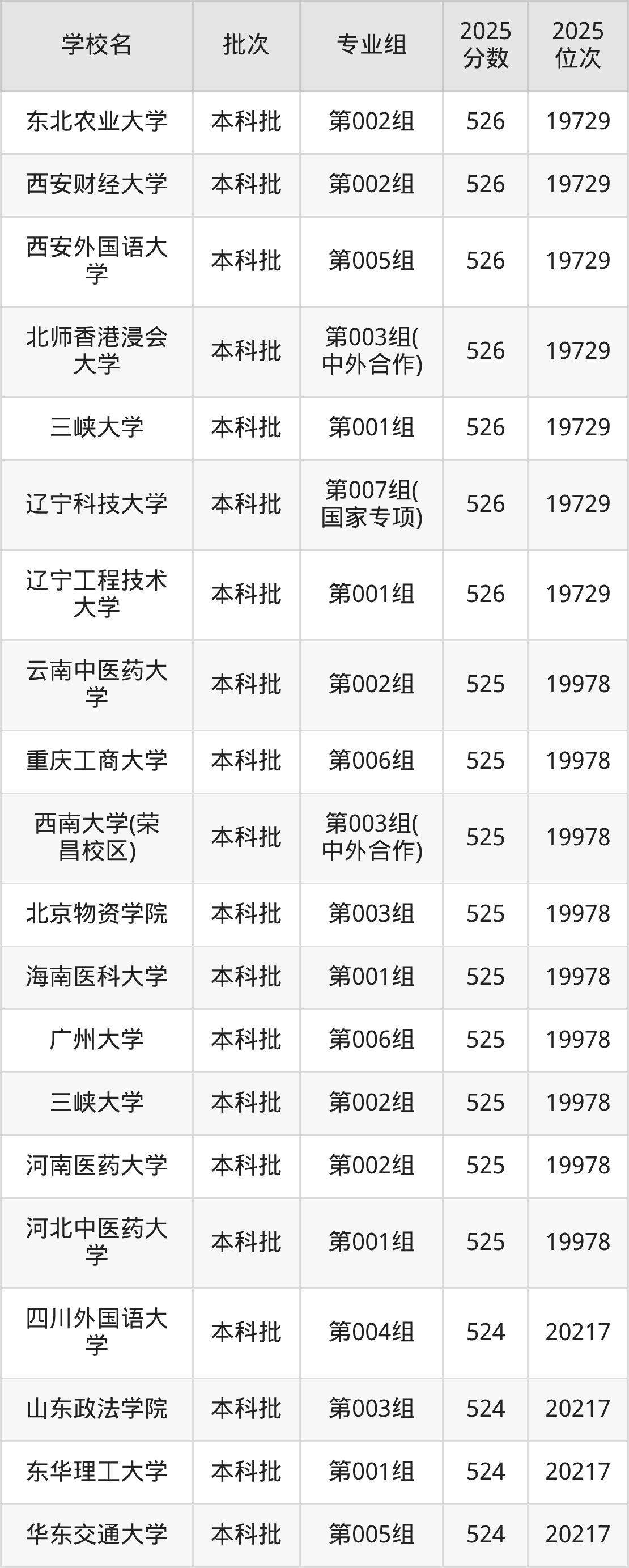 这些都是2026年高考物理类19730名~19978名考生可以报考的大学,更多学校名单如下表所示: