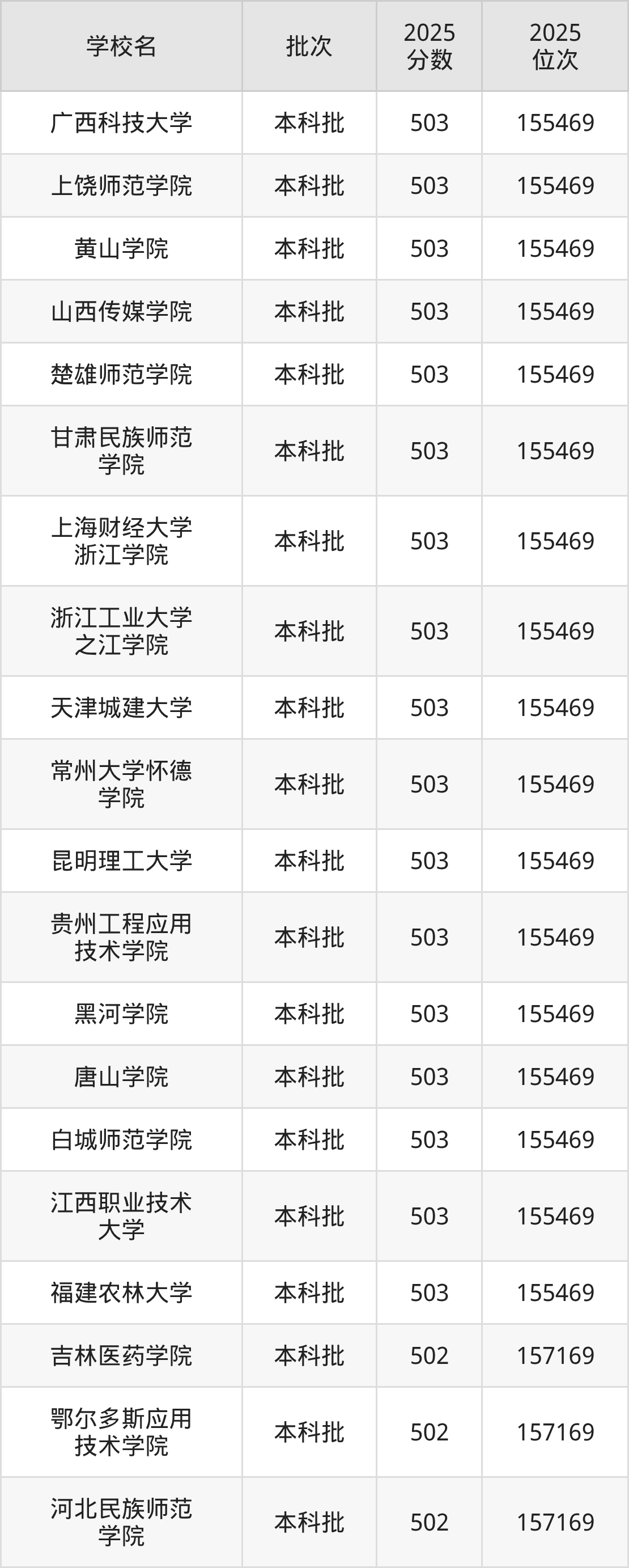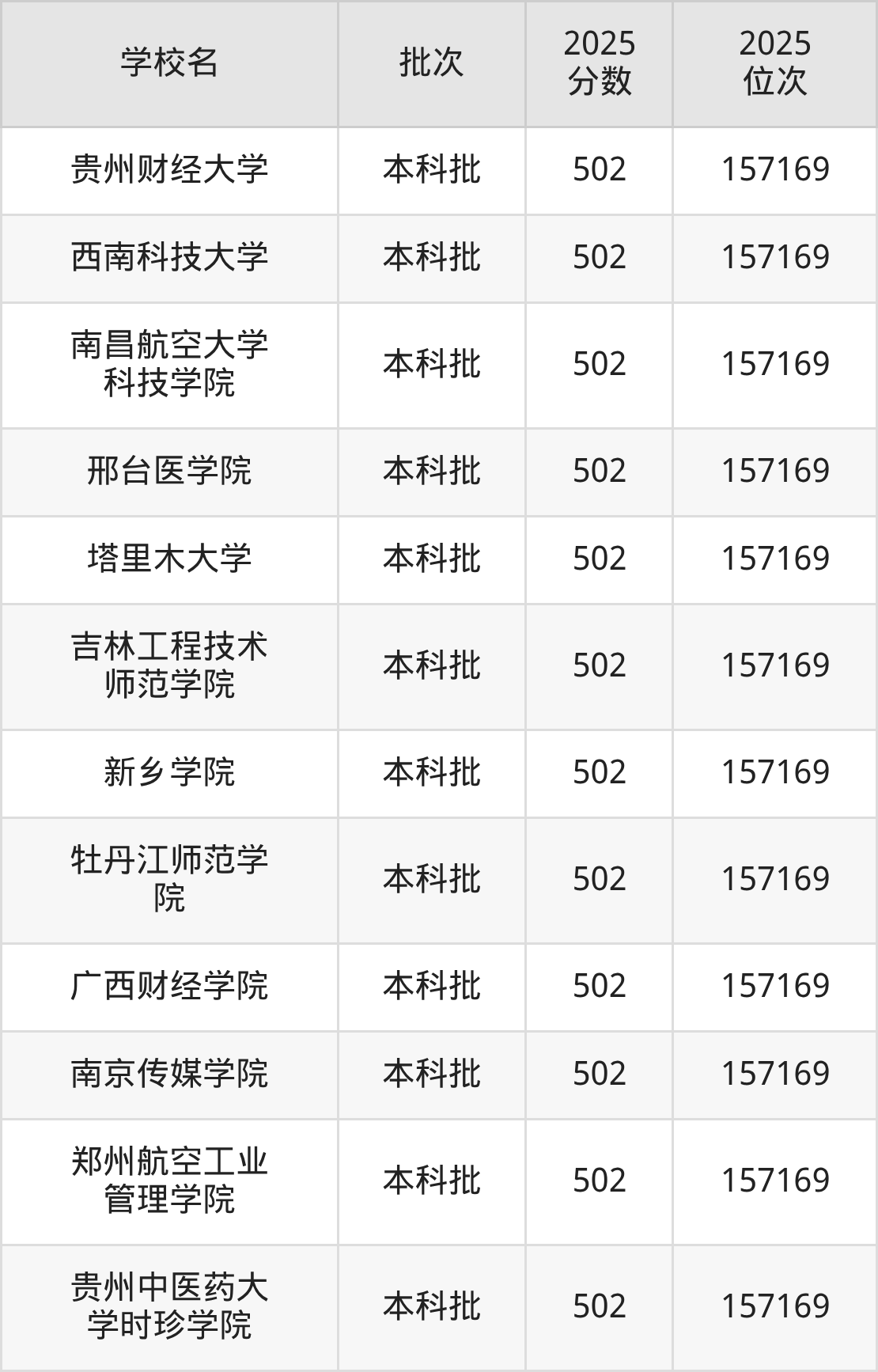 2025年河北高考物理类502分(155470名~157169名)能上的大学有贵州中医药大学时珍学院、郑州航空工业管理学院、南京传媒学院、广西财经学院等。