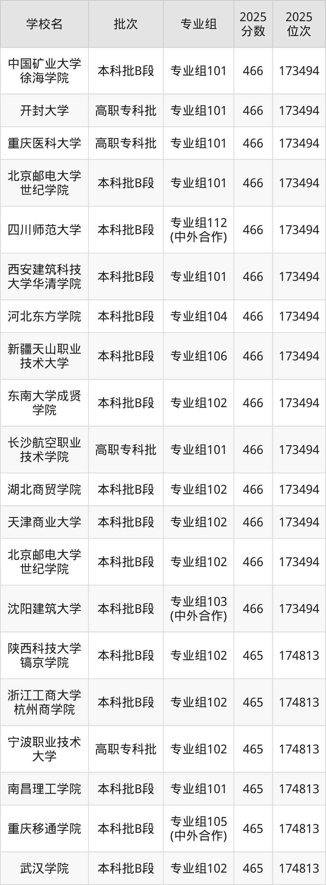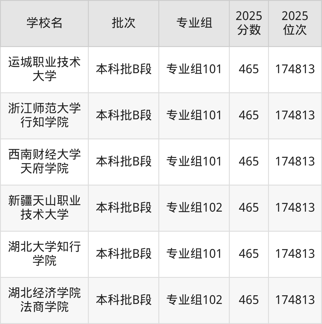 2025年四川高考物理类465分(173495名~174813名)能上的大学有湖北经济学院法商学院专业组102、湖北大学知行学院专业组101、新疆天山职业技术大学专业组102、西南财经大学天府学院专业组101等。