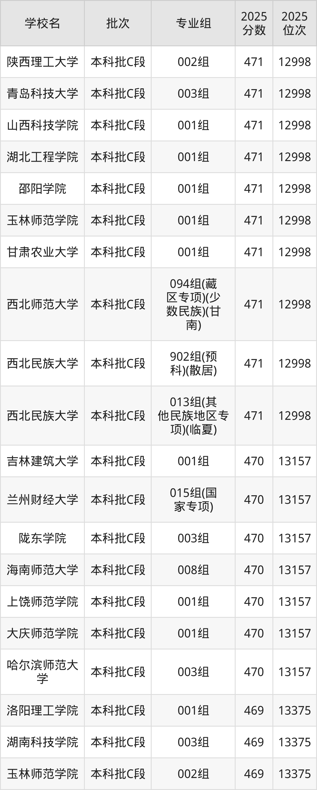 这些都是2026年高考历史类13376名~13568名考生可以报考的大学,更多学校名单如下表所示: