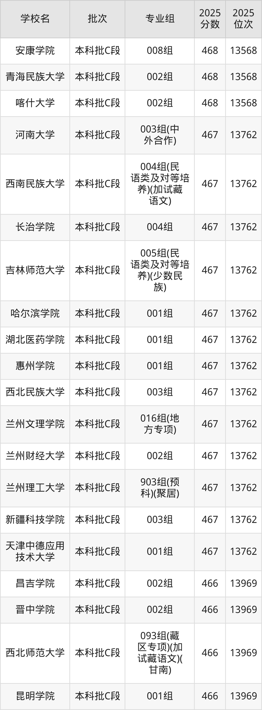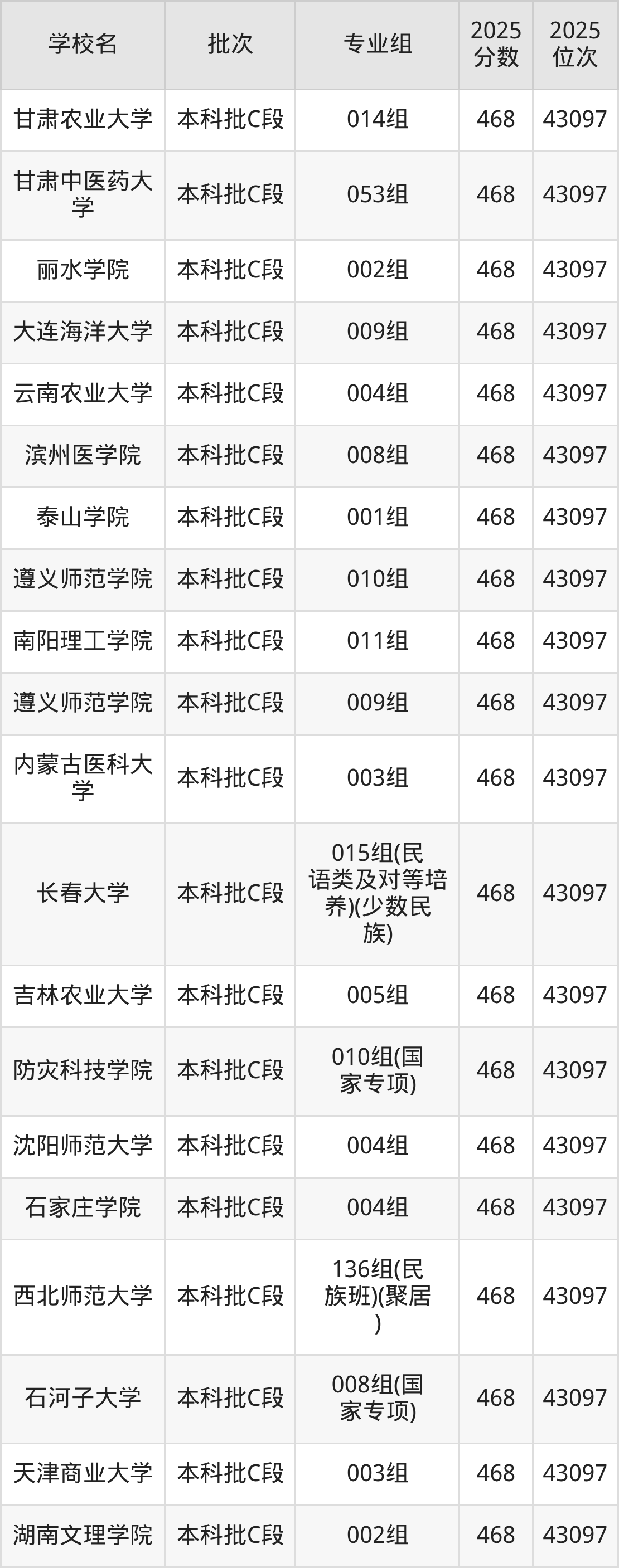 2025年甘肃高考物理类468分(42563名~43097名)能上的大学有天津外国语大学009组、天津商业大学003组、石家庄学院004组、防灾科技学院010组(国家专项)等。