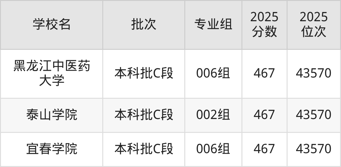 另外录取位次低于该区间(较稳妥)的有泰山学院002组(43570名)、徐州工程学院003组(43570名)等;录取位次高于该区间(可冲)的有天津农学院005组(42562名)、天津中医药大学017组(42562名)等。
