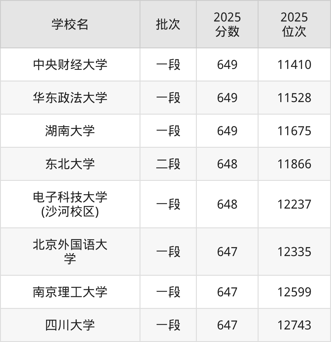 2025年浙江高考648分(11785名~12308名)能上的大学有东北大学、电子科技大学(沙河校区)。