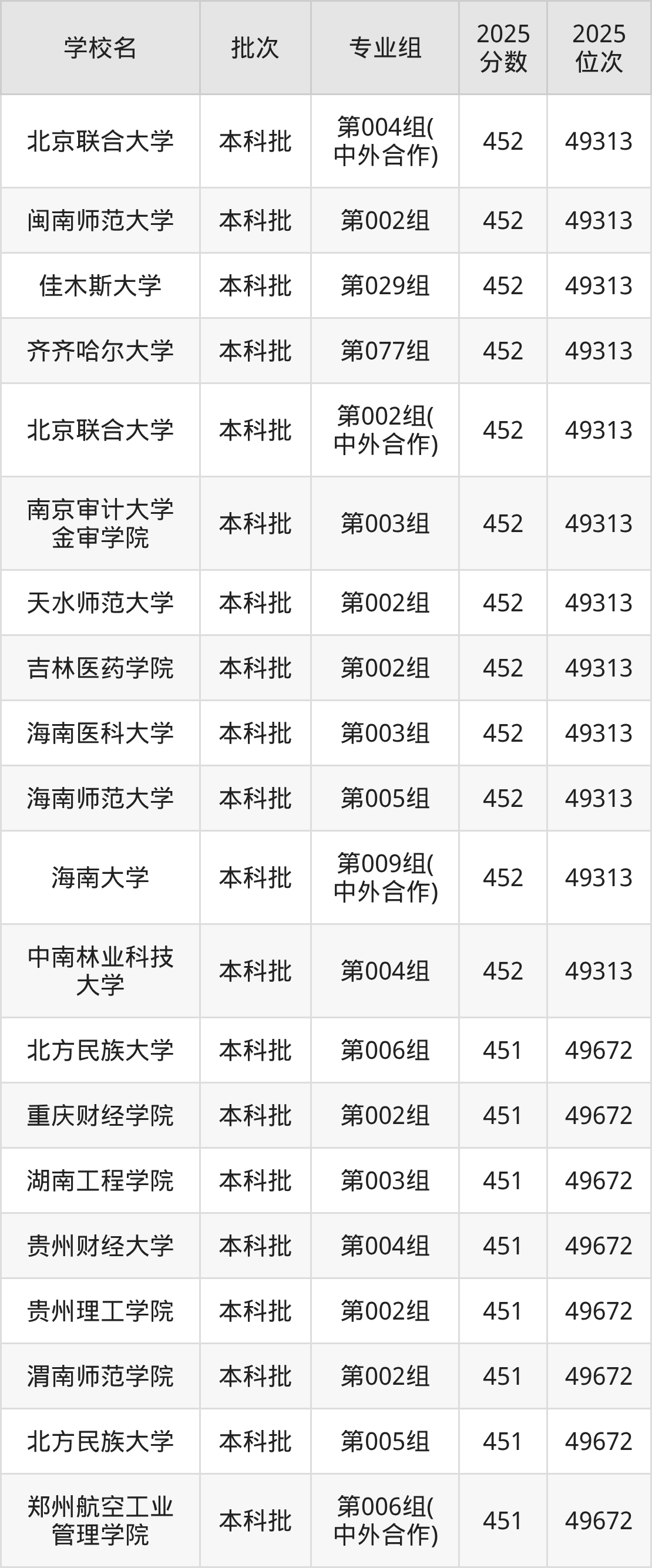 这些都是2026年高考物理类49673名~50020名考生可以报考的大学,更多学校名单如下表所示: