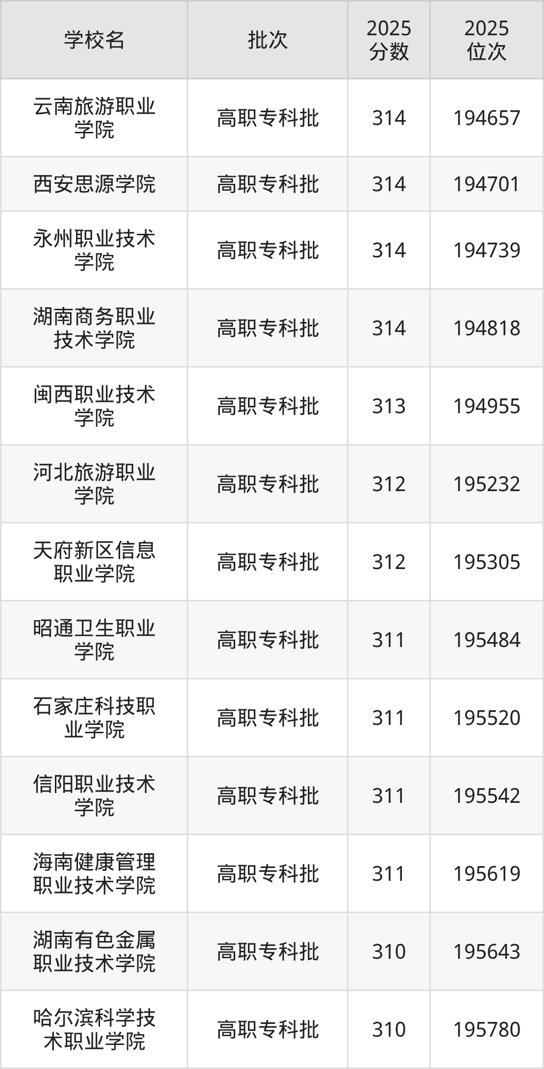 2025年贵州高考物理类312分(195152名~195388名)能上的大学有天府新区信息职业学院、河北旅游职业学院。