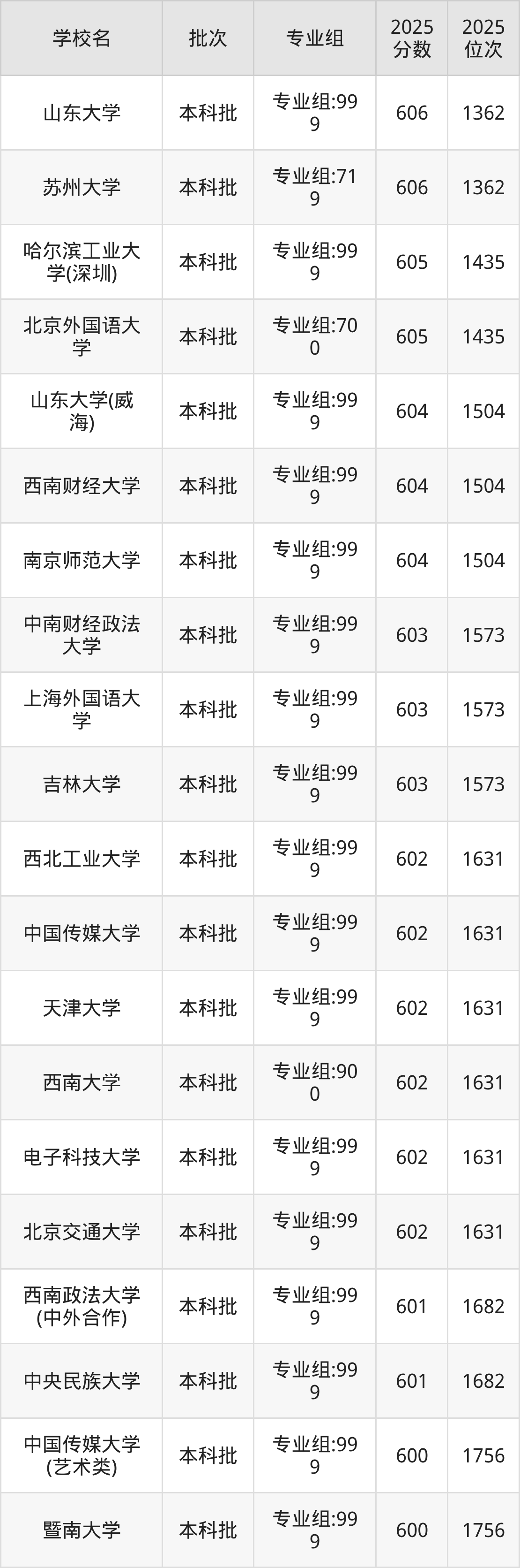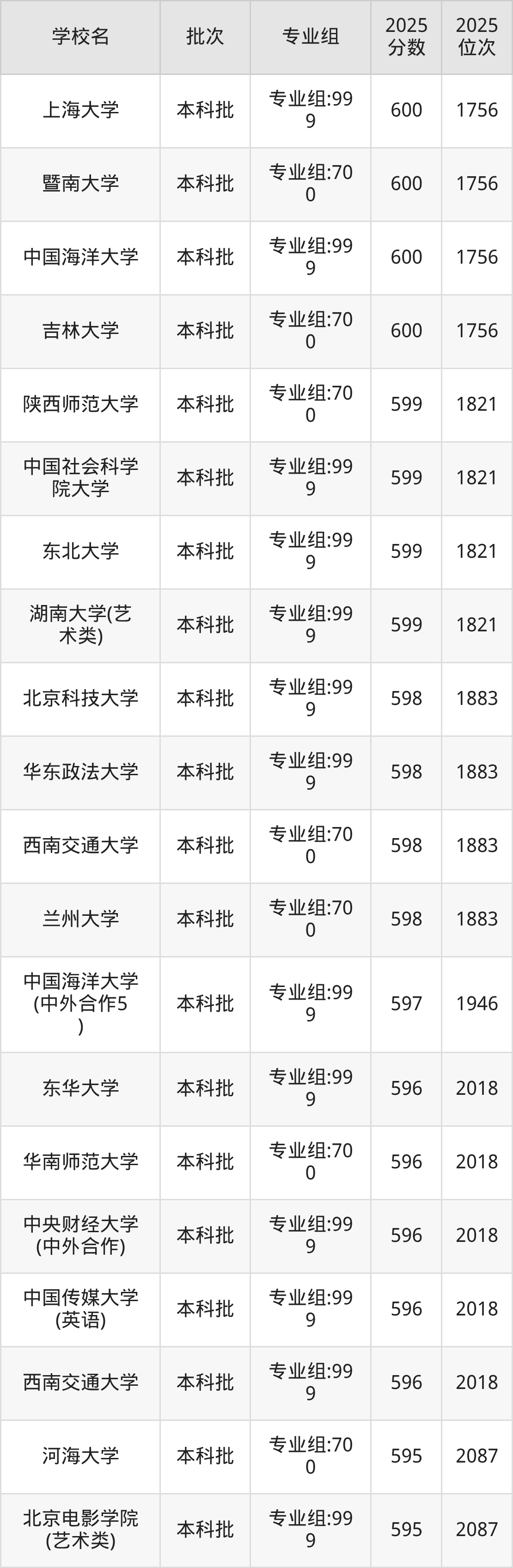 由于高考录取分数线历年波动较大,因此本文以该分数对应的位次排名为大家整理能上的大学名单。
