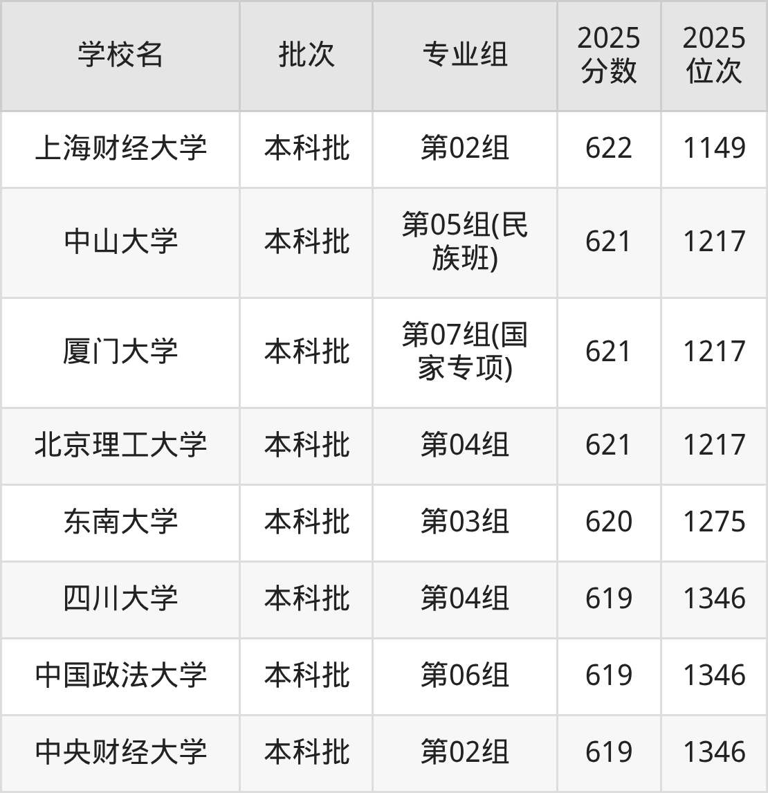 由于高考录取分数线历年波动较大,因此本文以该分数对应的位次排名为大家整理能上的大学名单。