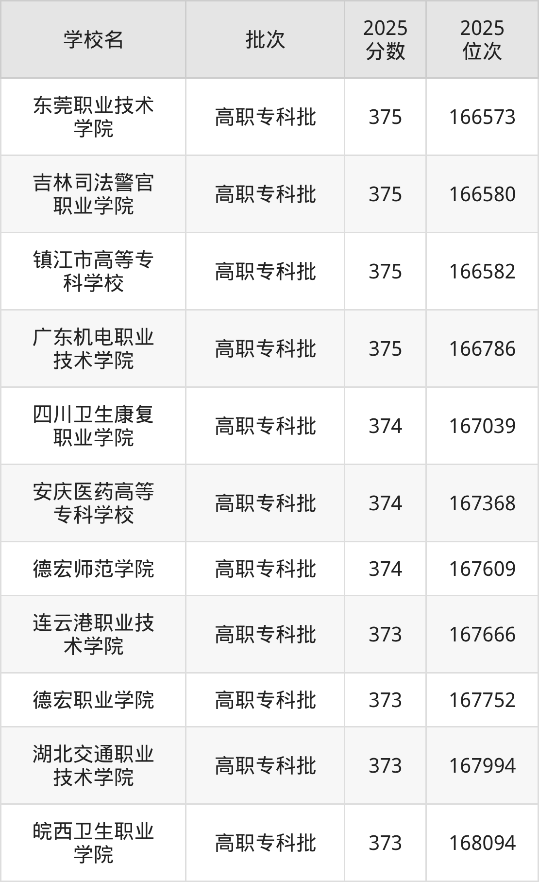 2025年贵州高考物理类374分(166926名~167630名)能上的大学有四川卫生康复职业学院、安庆医药高等专科学校、德宏师范学院。