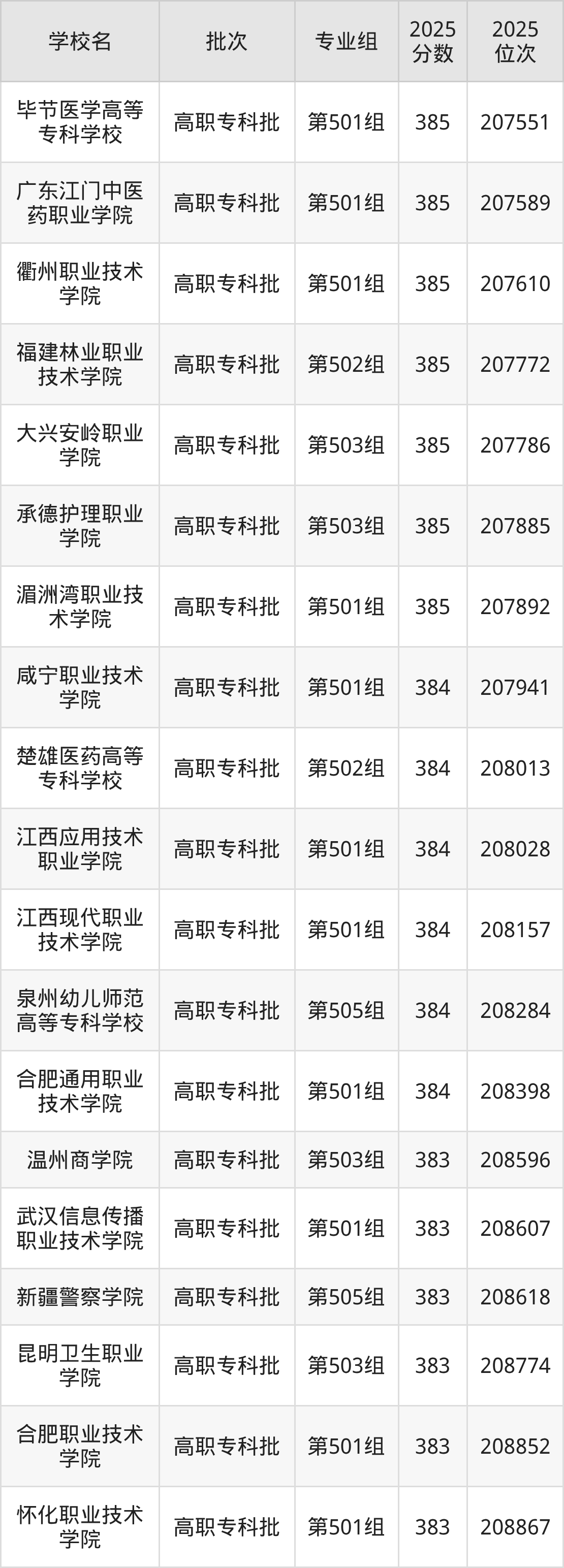 另外录取位次低于该区间(较稳妥)的有温州商学院第503组(208596名)、武汉信息传播职业技术学院第501组(208607名)等;录取位次高于该区间(可冲)的有湄洲湾职业技术学院第501组(207892名)、承德护理职业学院第503组(207885名)等。