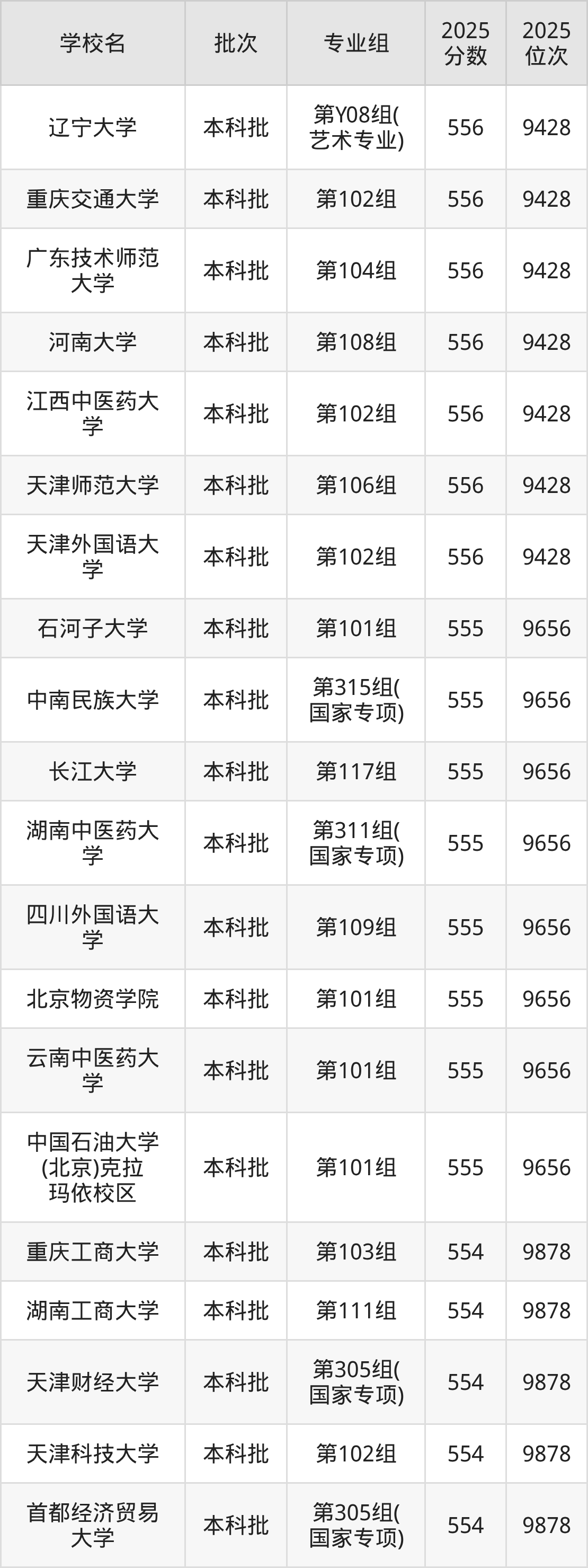 这些都是2026年高考历史类9879名~10092名考生可以报考的大学,更多学校名单如下表所示: