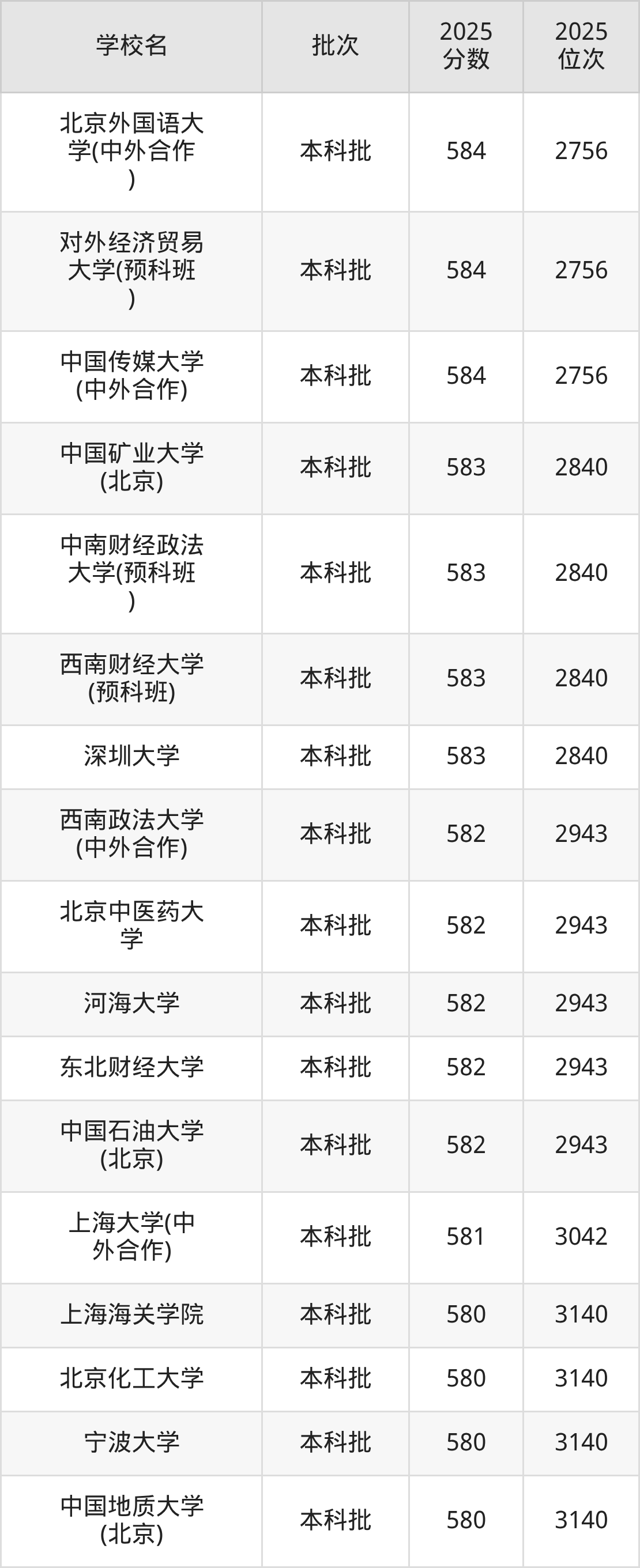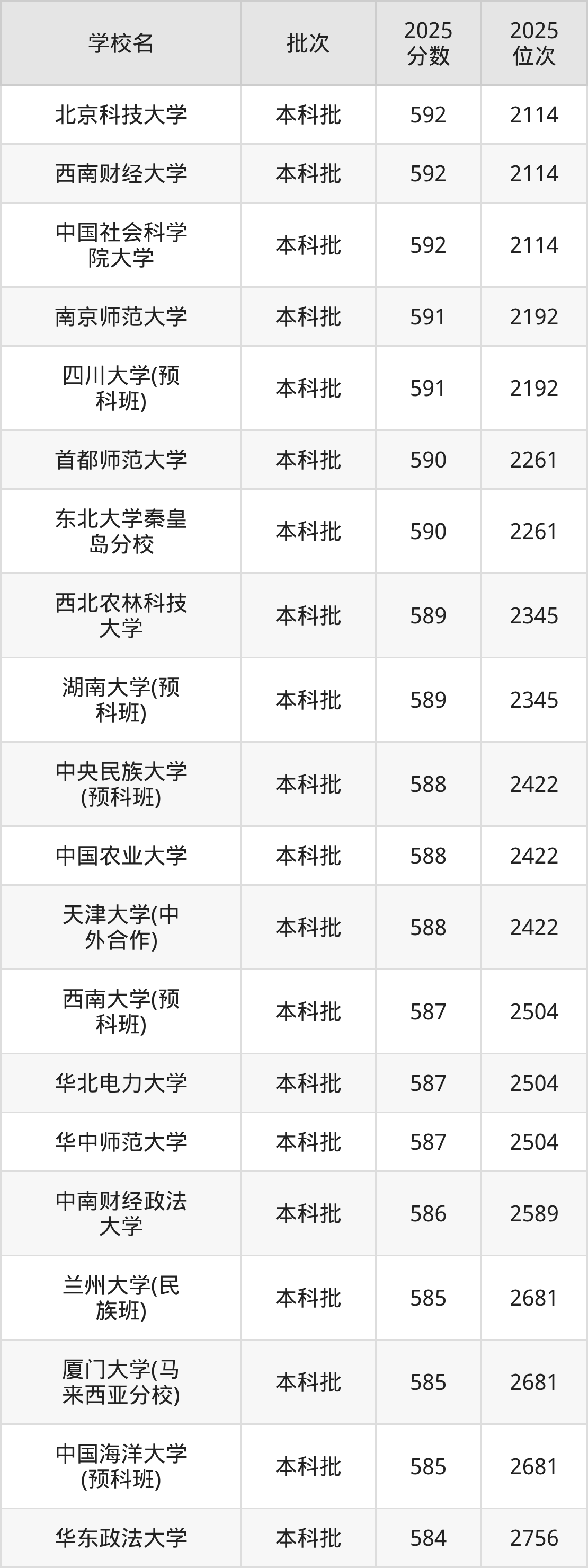 这些都是2026年高考历史类2590名~2681名考生可以报考的大学,更多学校名单如下表所示:
