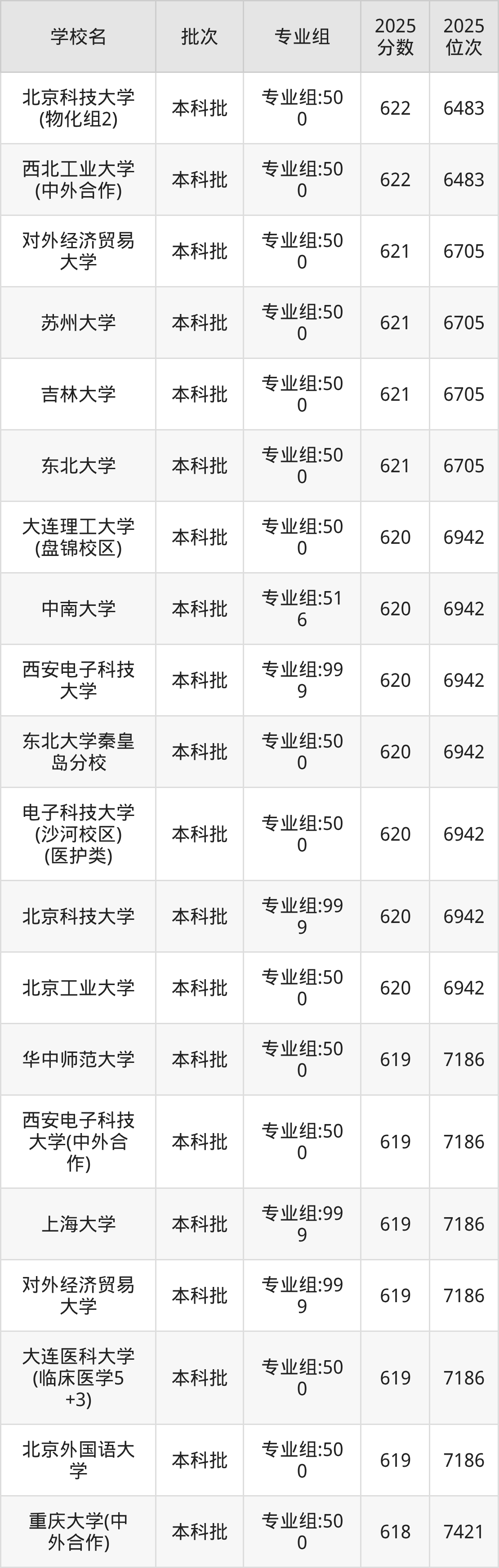 这些都是2026年高考物理类6943名~7186名考生可以报考的大学,更多学校名单如下表所示:
