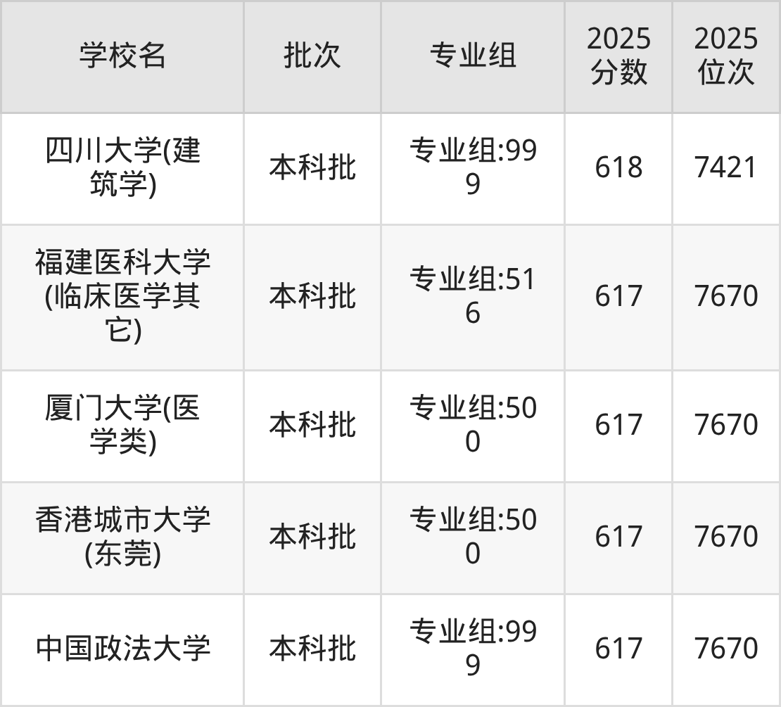 另外录取位次低于该区间(较稳妥)的有四川大学(建筑学)专业组:999(7421名)、重庆大学(中外合作)专业组:500(7421名)等;录取位次高于该区间(可冲)的有北京工业大学专业组:500(6942名)、北京科技大学专业组:999(6942名)等。