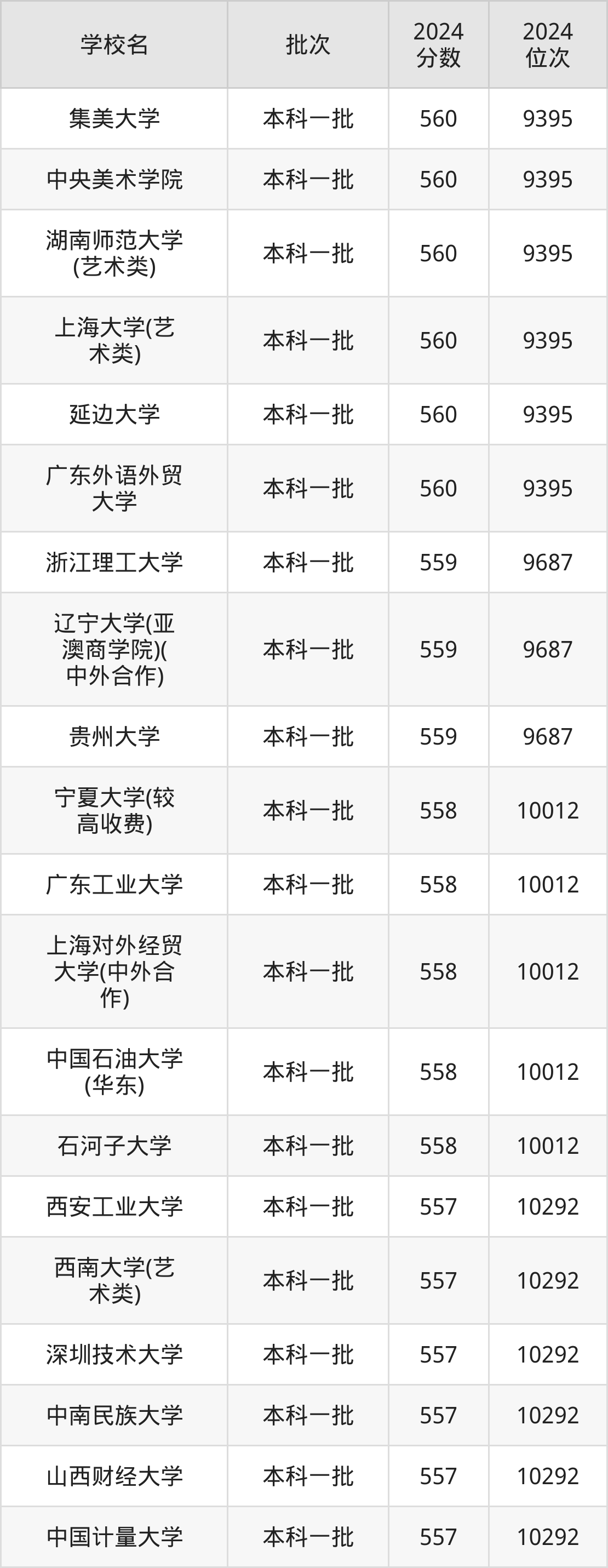 这些都是2025年高考文科9688名~10012名考生可以报考的大学,更多学校名单如下表所示: