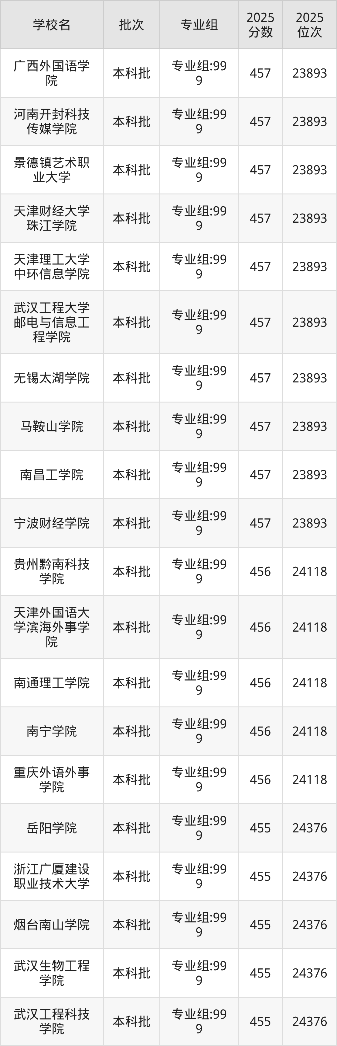 这些都是2026年高考历史类24377名~24631名考生可以报考的大学,更多学校名单如下表所示: