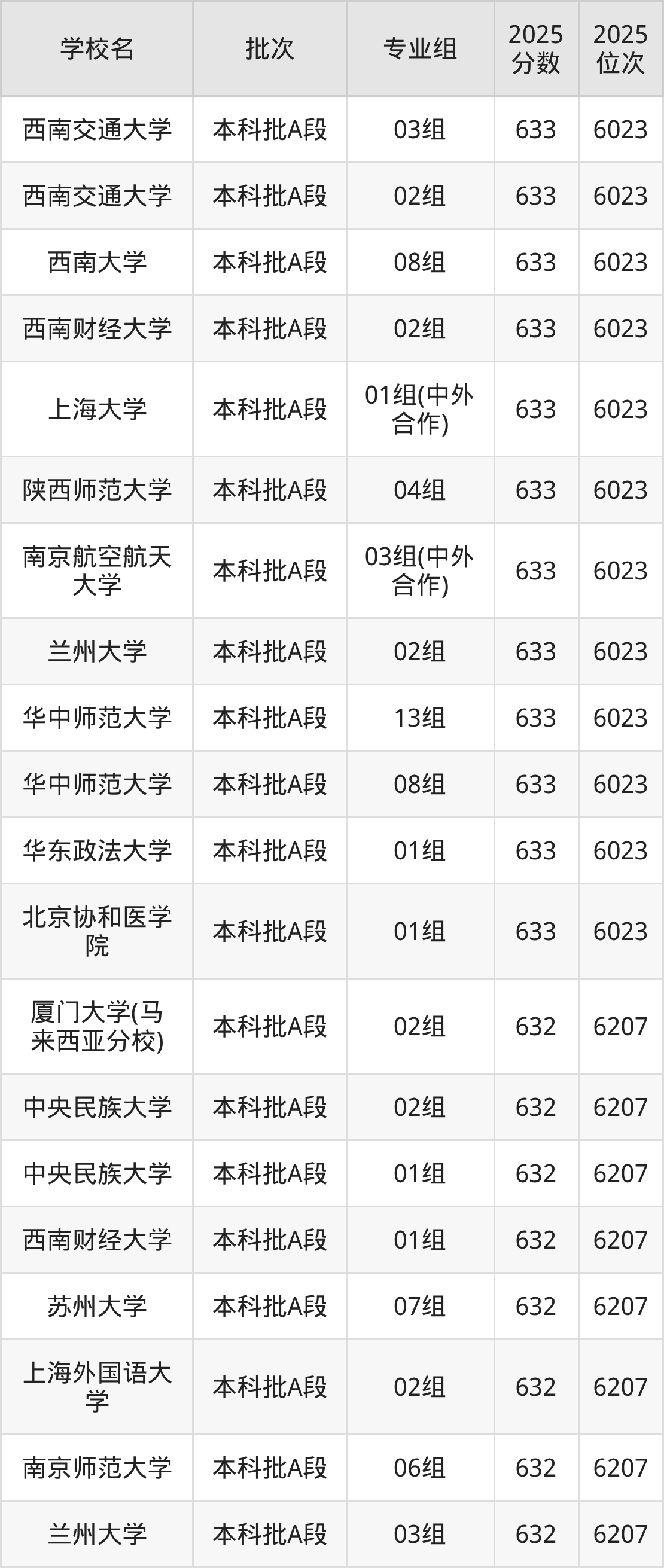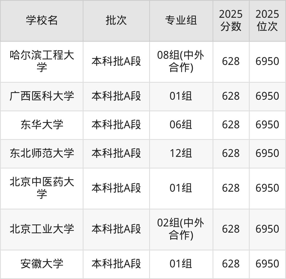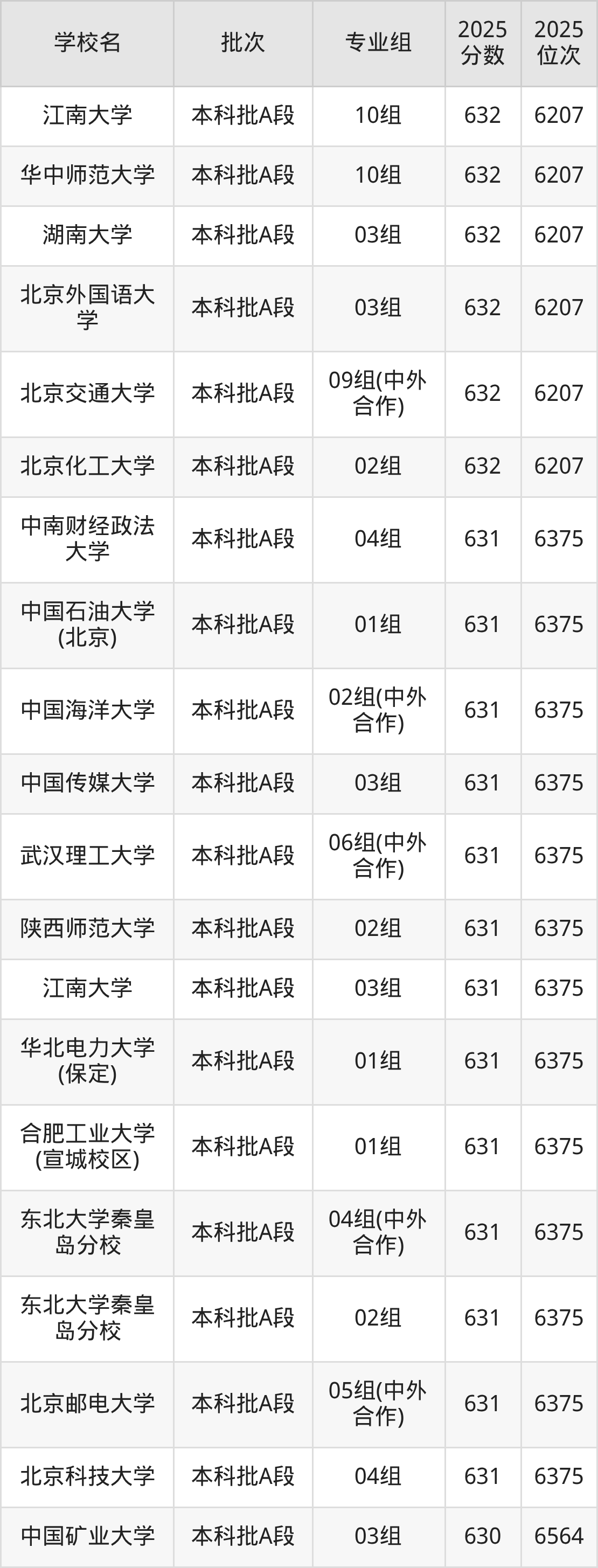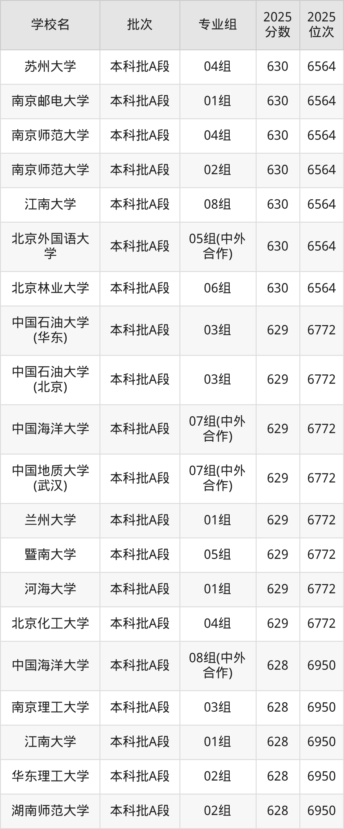 这些都是2026年高考6376名~6564名考生可以报考的大学,更多学校名单如下表所示: