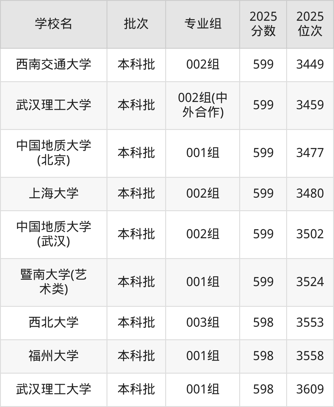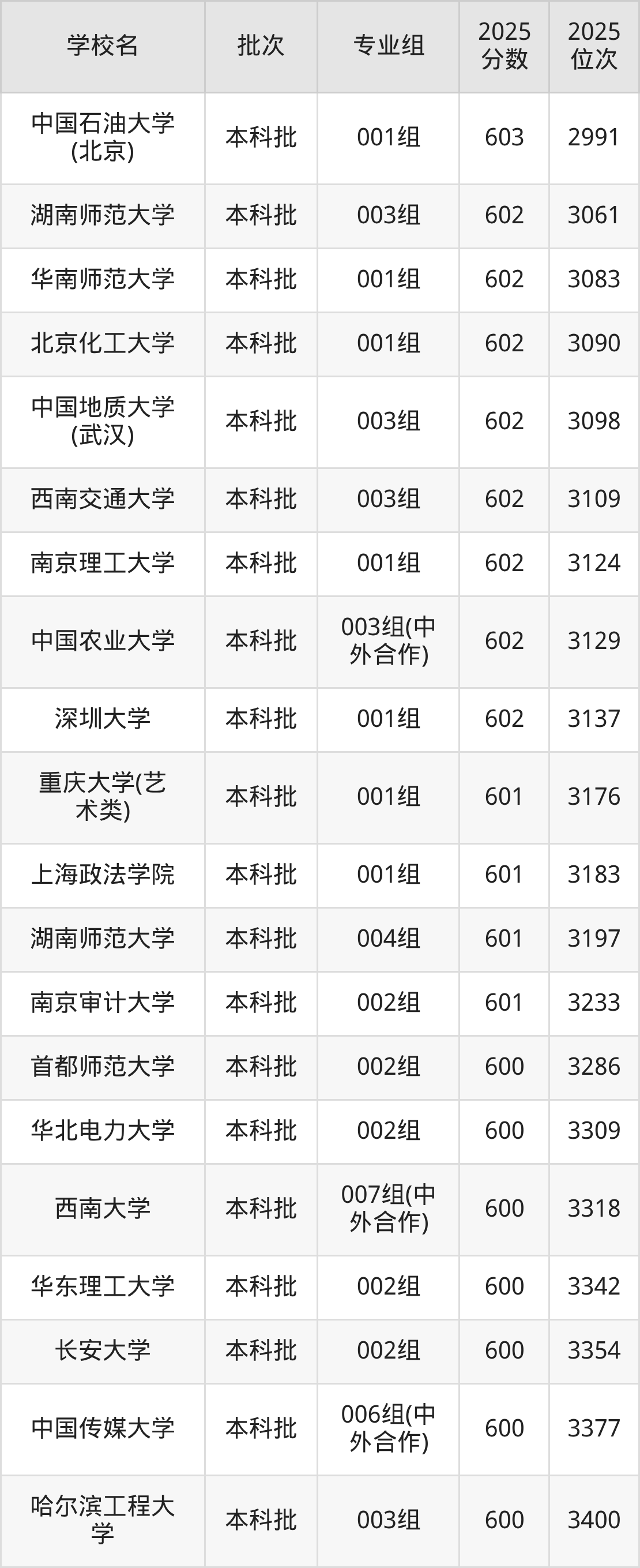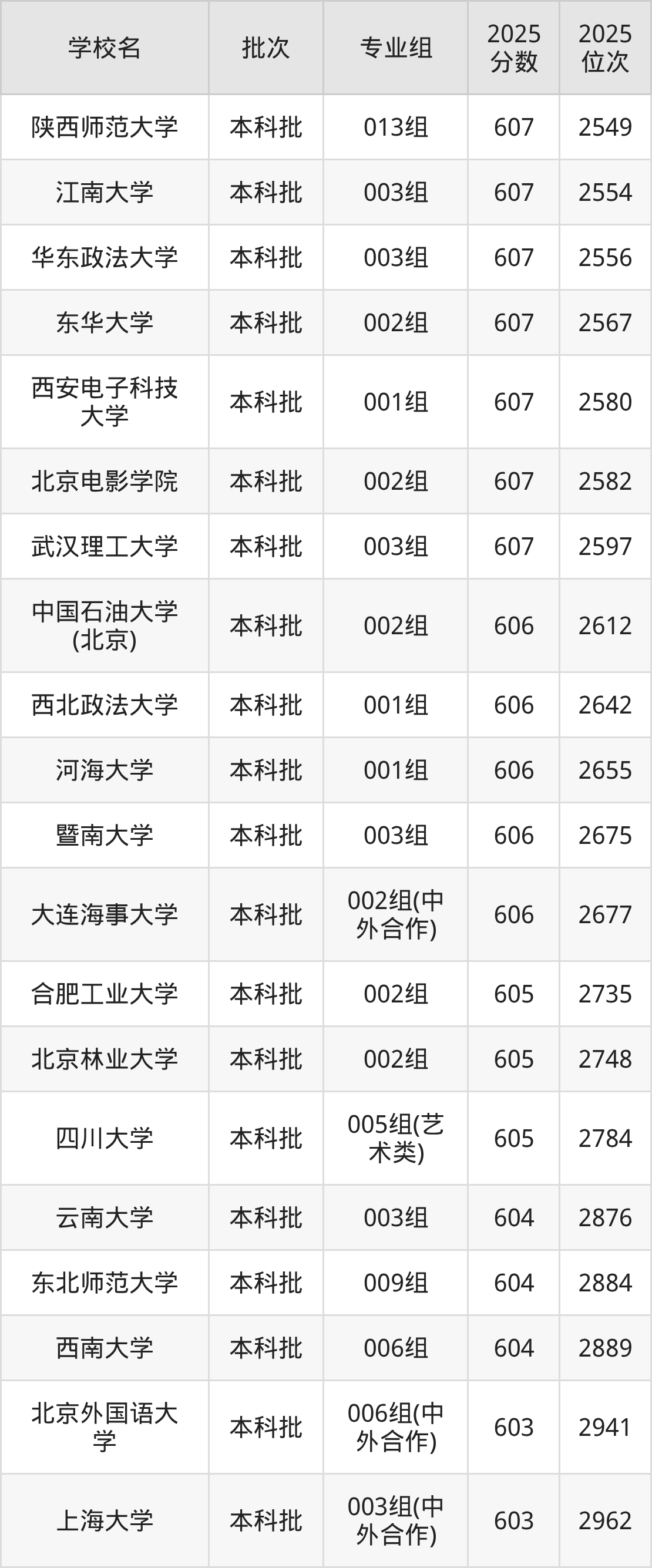 这些都是2026年高考历史类3035名~3157名考生可以报考的大学,更多学校名单如下表所示: