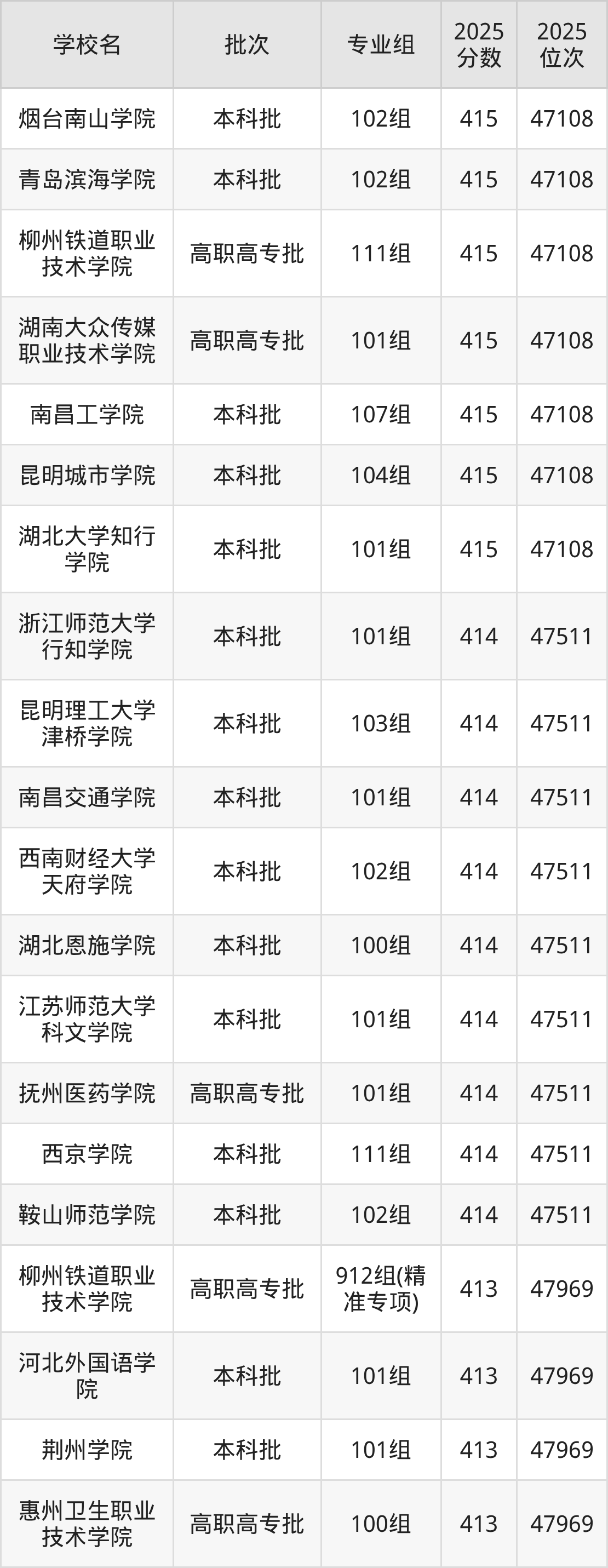 这些都是2026年高考历史类47512名~47969名考生可以报考的大学,更多学校名单如下表所示: