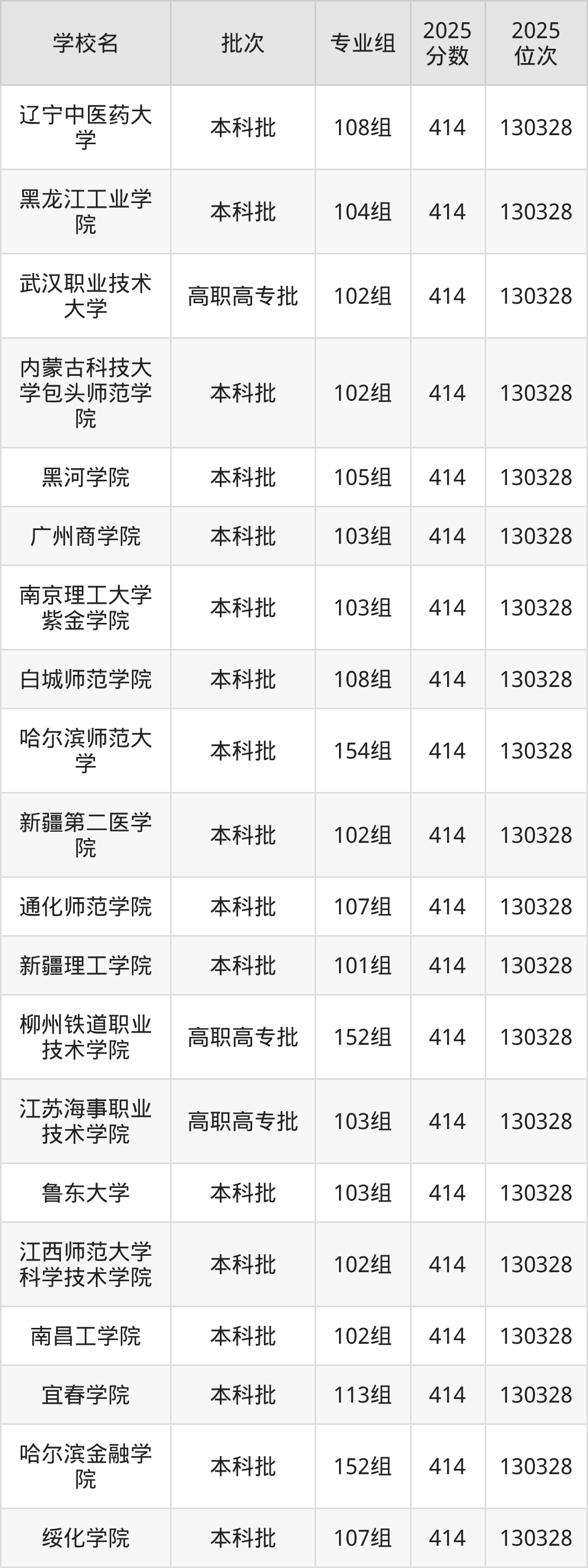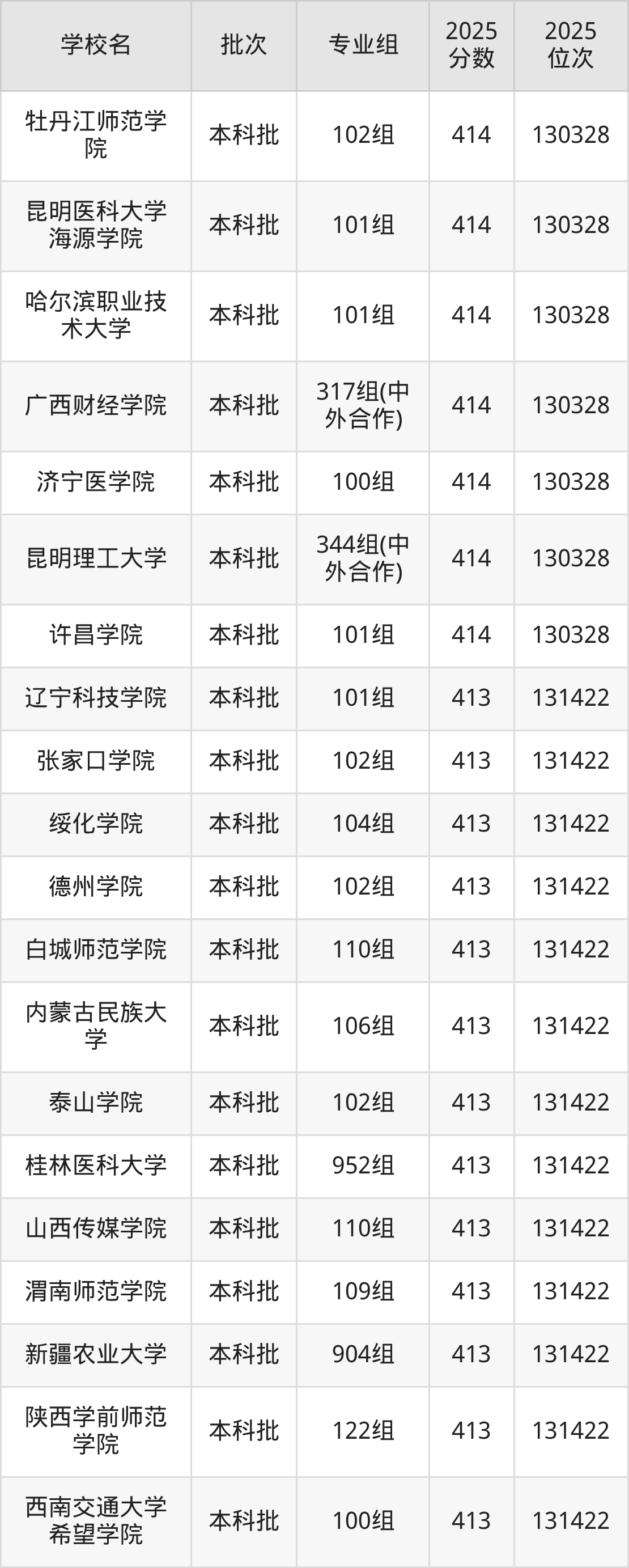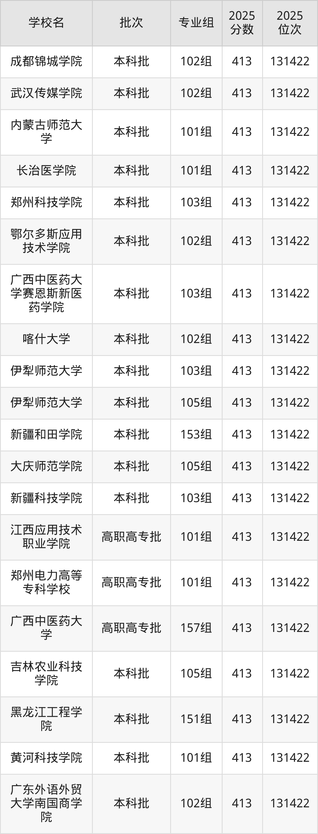 2025年广西高考物理类413分(130329名~131422名)能上的大学有长治医学院101组、内蒙古师范大学101组、内蒙古民族大学106组、白城师范学院110组等。