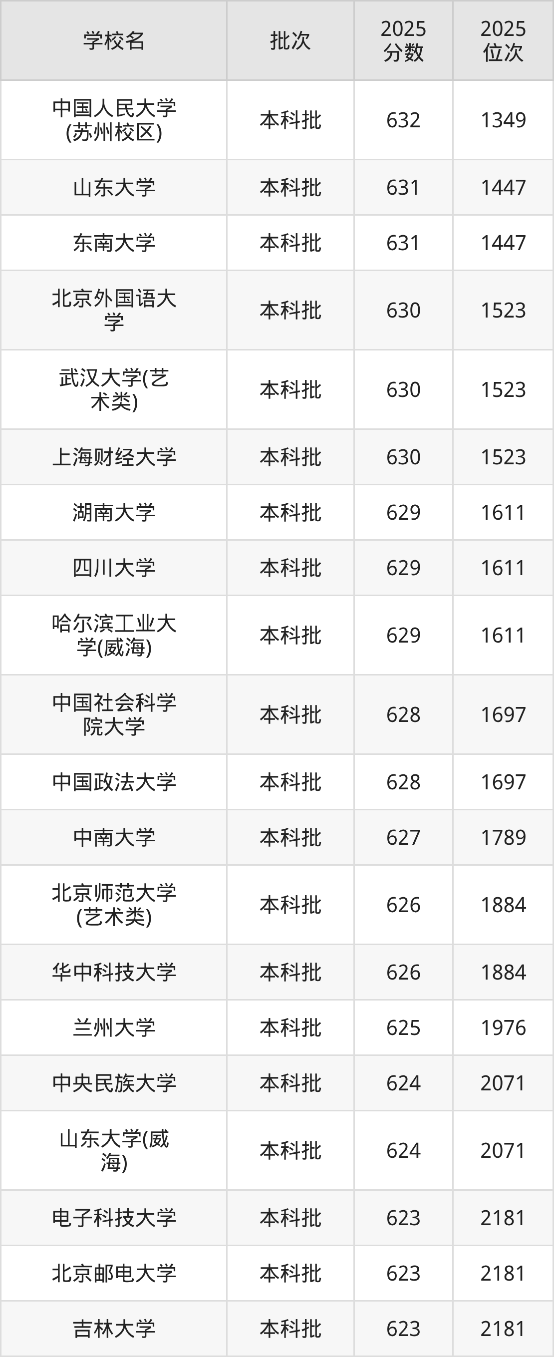 由于高考录取分数线历年波动较大,因此本文以该分数对应的位次排名为大家整理能上的大学名单。