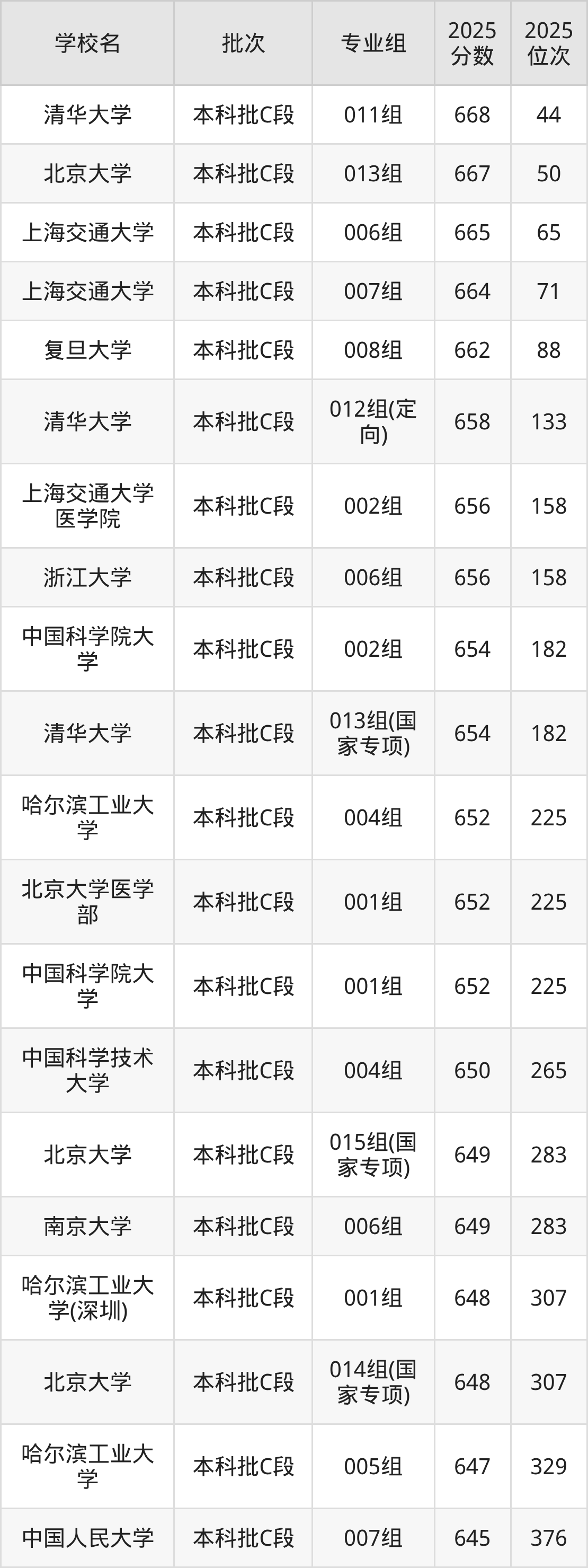 2025年甘肃高考物理类660分(99名~111名)录取位次低于该区间(较稳妥)的有清华大学012组(定向)(133名)、上海交通大学医学院002组(158名)等;录取位次高于该区间(可冲)的有复旦大学008组(88名)、上海交通大学007组(71名)等。