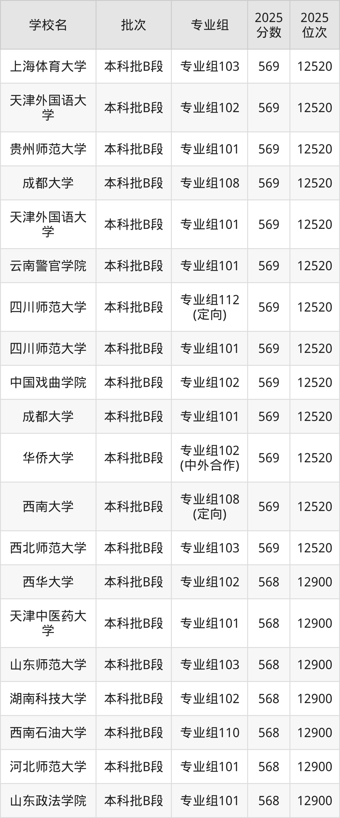 这些都是2026年高考历史类12901名~13238名考生可以报考的大学,更多学校名单如下表所示: